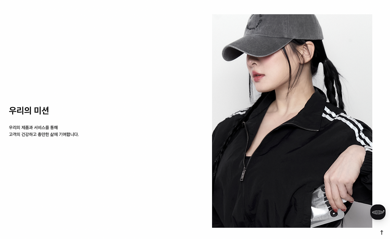 브랜드에 대한 설명이 있는 페이지인데, 흡사 쇼핑몰이나 패션 브랜드 같습니다. 갓생 사는 언니들이 에어팟 맥스 끼고 러닝하고 나서 마시는 프로틴 느낌도 들고 말이죠?