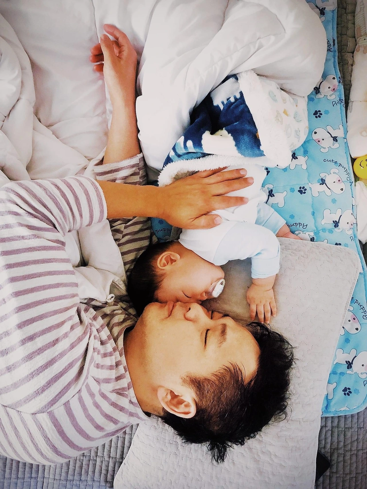 아기의 열은 일요일 새벽까지 떨어지지 않았다. 그래도 (다행히) 새로운 해열제를 먹인 뒤로는 수면의 양상이 달라졌다. 지난밤보다 편해 보인다.