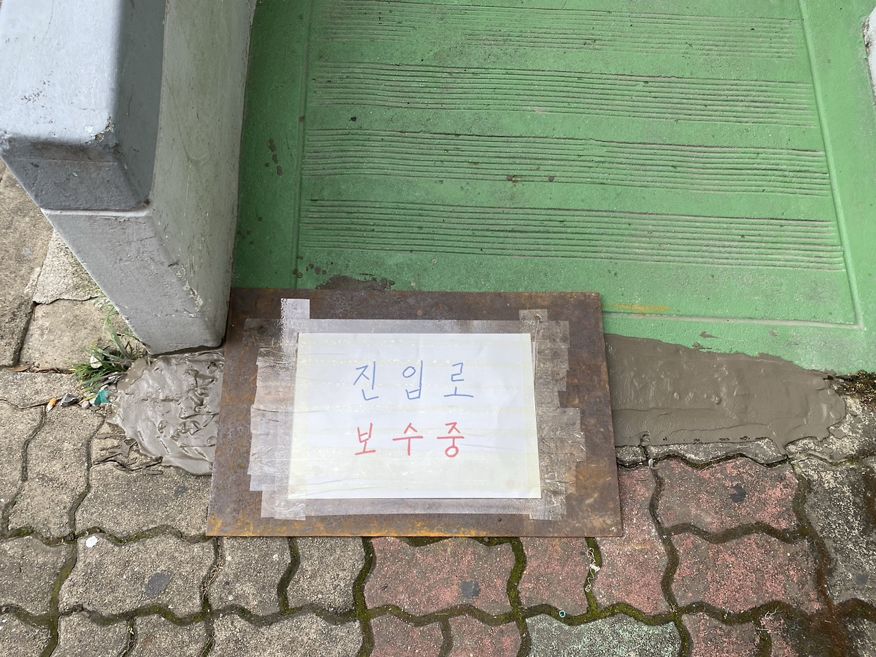 그리고 진출입로 턱이 높아 넘어질 위험이 있는 진입로에도 시멘트를 사서 보완하였다. 한참 시멘트를 바르고 있는데 나를 알아보시는 이웃분께서 “1303호 할머니 아들 자랑을 엄청나게 하더군요. 효자라고….”