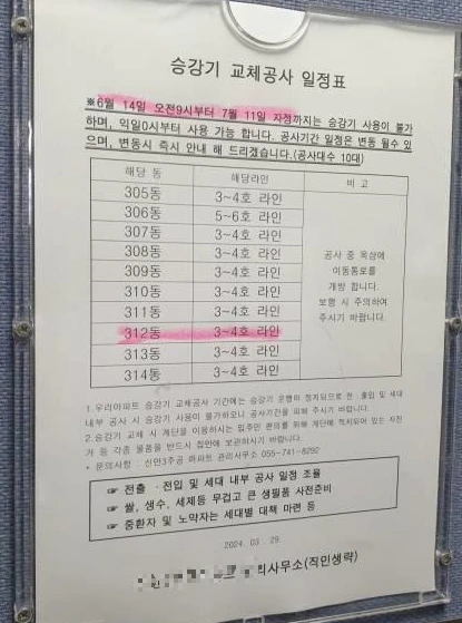 갑자기 어머니가 사는 아파트 승강기 교체 공사를 한다고 한다.