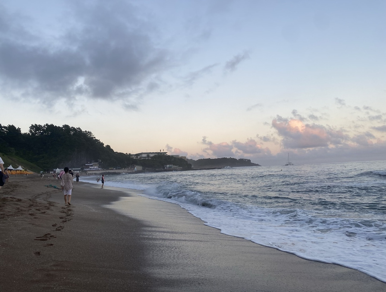 여름철 중문색달해수욕장은 서핑보드 타는 사람들로 늘 붐비는 곳이며 젊음과 낭만이 넘친다. 해수욕을 즐기는 않는 사람이라도 바닷가에서 젊음을 만끽하며 걷는 즐거움은 제주도 여행의 별미이다. 낮에는 태양이 뜨거우니 해 질 녘에 약 1시간 걷는다면 건강에 도움도 되고 멋진 경관도 즐길 수 있다. 여름에는 해파리가 바닷가로 떠내려오는데 나는 작은 막대기로 해파리를 모래사장밖으로 던져 내는 활동으로 나의 걷기 활동에 의미를 더했다. 나의 이런 선한 영향력으로 다른 사람들도 같이 동참해 주는 분이 있어 보람이 있었다.