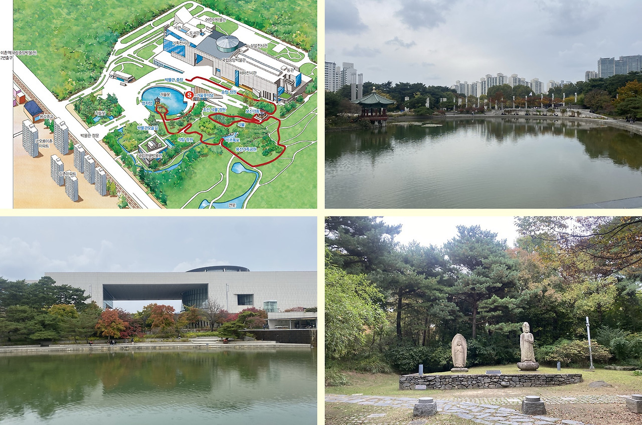 국립중앙박물관에 가면 실내의 유산뿐만 아니라 박물관 정원에 있는 보물들을 보면서 용산 가족공원까지 산책도 해보자.