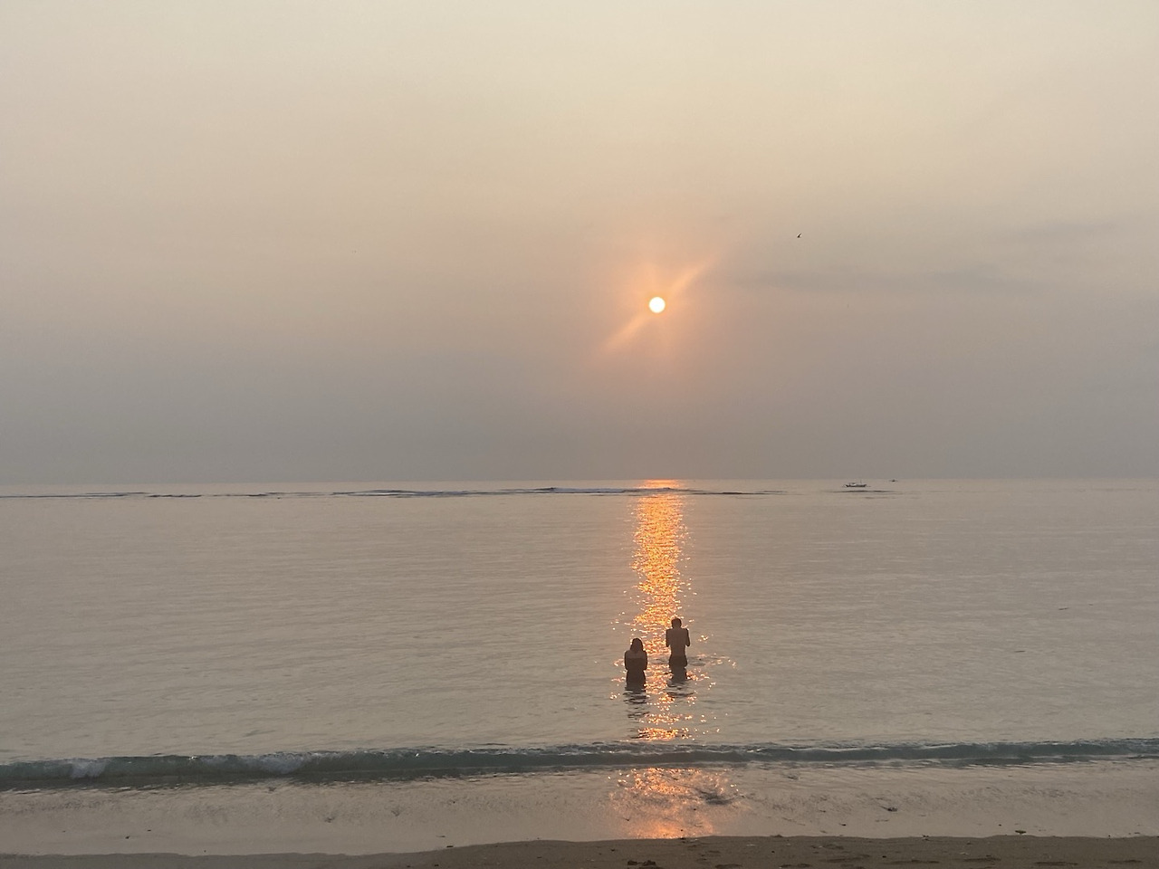 4. 사누르의 일출장면과 아침기도: 발리에서도 비교적 조용한 도시인 사누르는 아침일출이 장관인 곳인데 해돋이 명소에 가서 황홀한 해돋이를 보았다. 사누르에서는 아침 해돋이 시간에도 많은 사람들이 물놀이를 즐기면서 각자 자신만의 방식으로 일출을 즐겼다. 젊은 커플 한쌍이 물속으로 들어가더니 아침 해돋이 기도를 하는 것을 보았는데 이 한 장면으로 발리가 어떤 곳이지 잘 설명되었다.