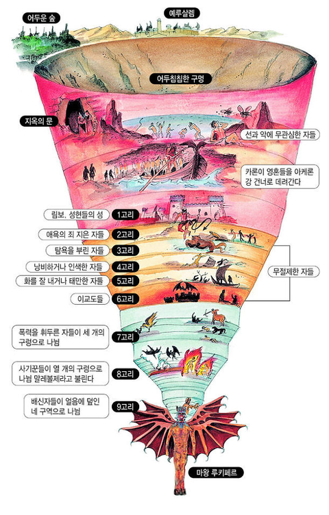 단테의 신곡에서는 지옥이 9단계로 나뉜다.