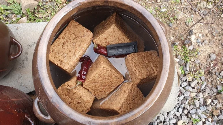 작년에 준비한 항아리를 소독하고 메주를 꺼내 하아리에 담았다.