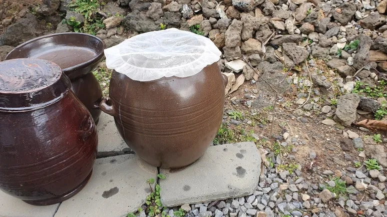 항아리 뚜껑에 날짜를 써서 붙여놓았다.