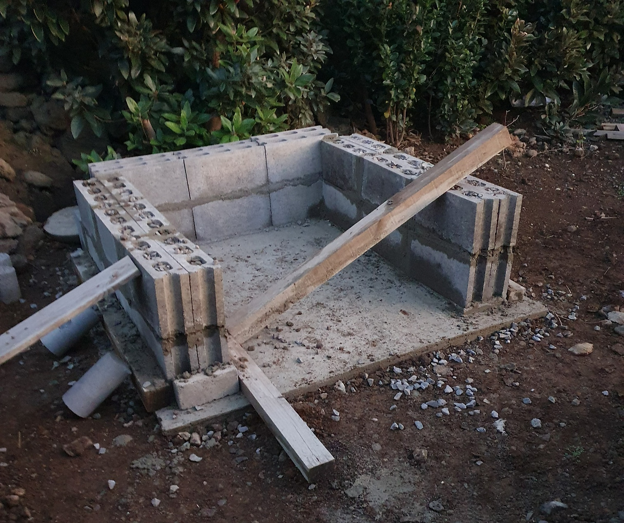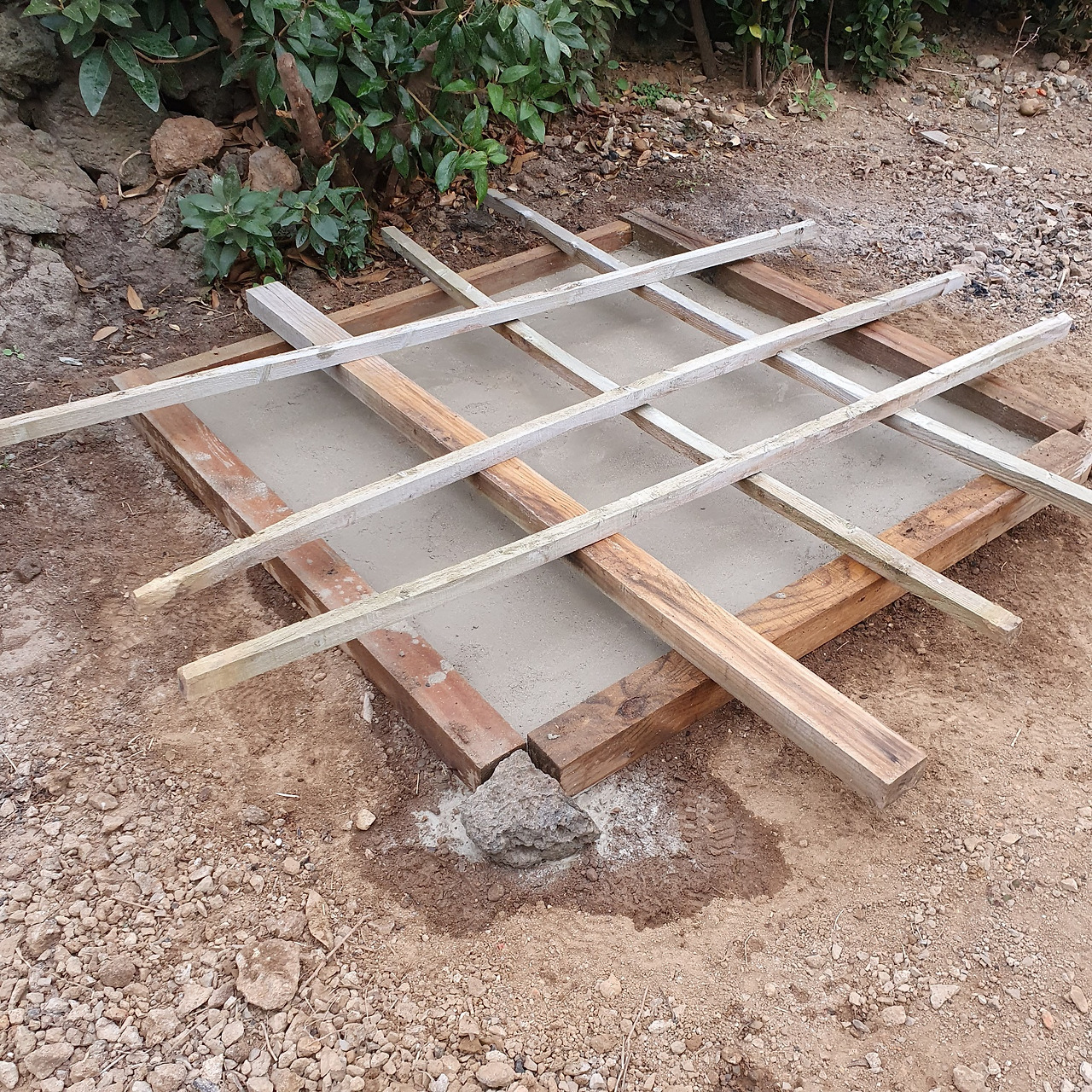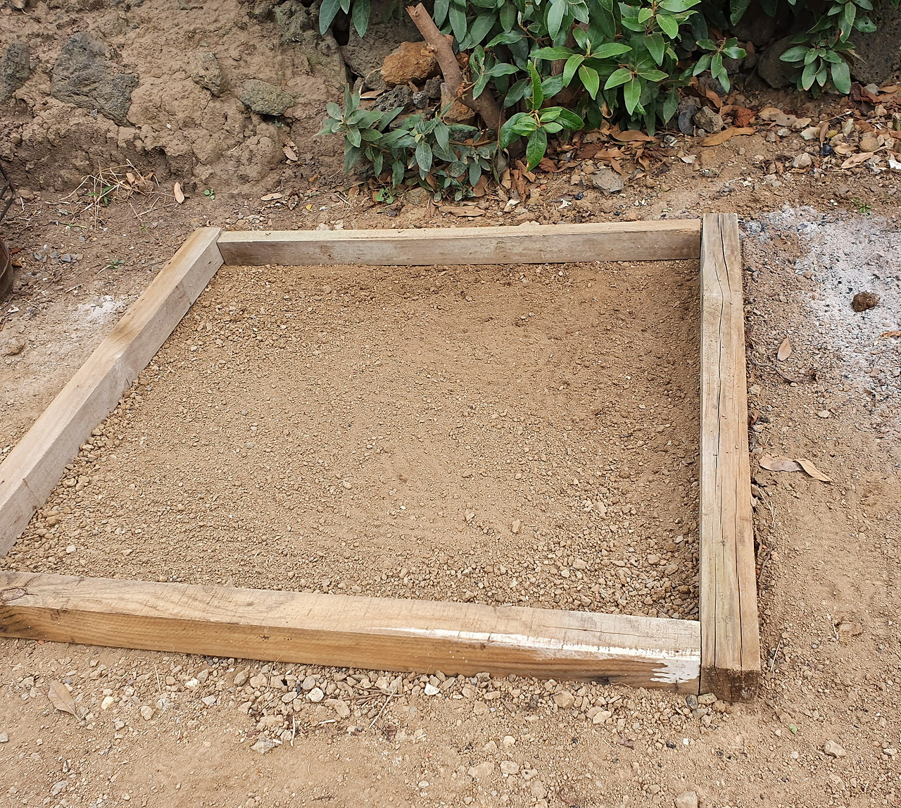 화덕이 놓일 자리를 잡고 바닥을 편평하게 만들었다. 돌과 자갈을 걷어내서 시멘트가 잘 붙도록 하기 위해서였다.
