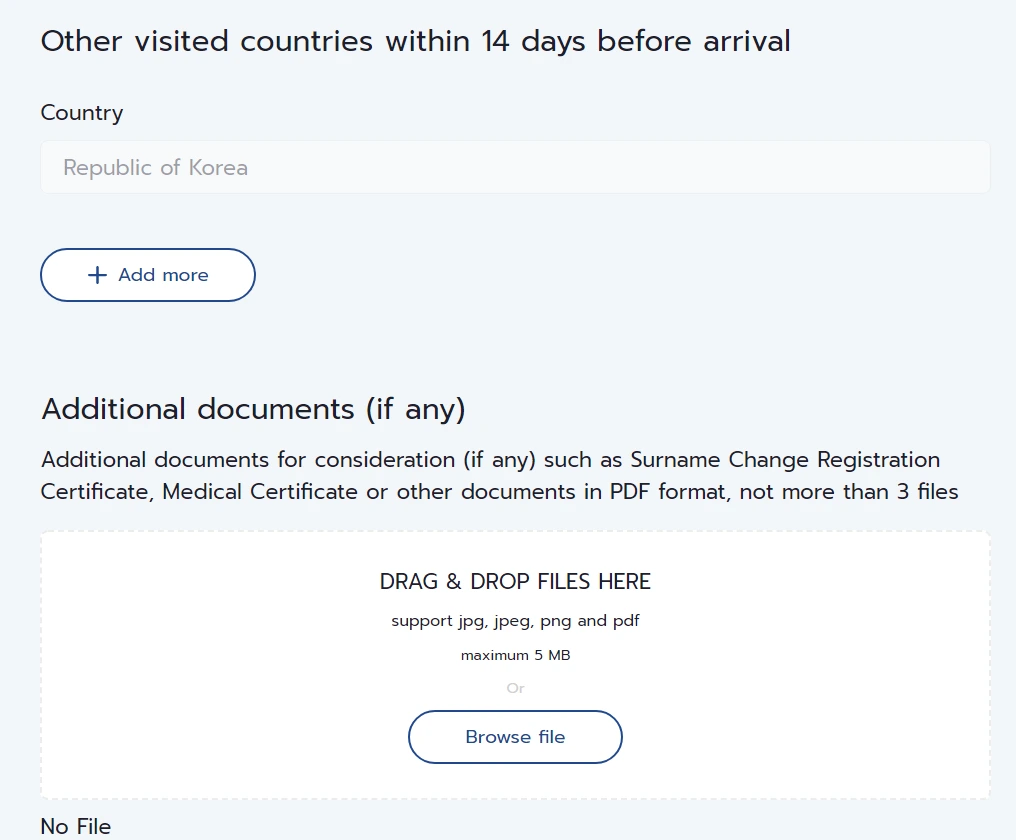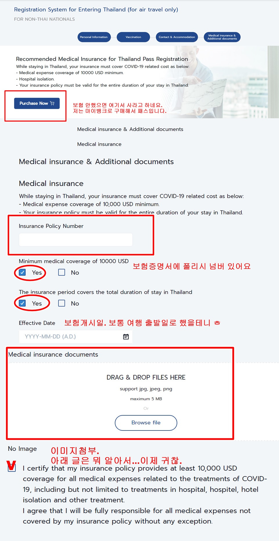 저는 위에서 선언한 모든 정보가 제가 알고 있는 사실임을 증명하고, 태국 외교부에 제 개인정보 수집에 동의하여 태국 여행을 심사하고 원활하게 할 수 있도록 합니다.