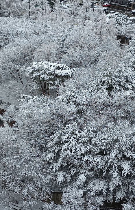2024년 2월 22일 이 글을 쓴다. 무슨 대단한 문학작품을 쓰는 것도 아닌데 날짜까지 밝히는 이유는 특별한 의미는 없다. 우수(雨水)가 지난 이 시절에 너무 이름다운 설경을 만났기 때문이다. 우리 아파트는 30년도 넘은 오래 된 아파트다. 그래서인지 나무도 제법 우거져 있고, 또 언덕 위에 있어서 때가 되면 제법 그럴싸한 풍경도 볼 수 있다. 서울 아파트의 10평 값도 안되는 아파트지만 불만 없이 잘 살고 있다.