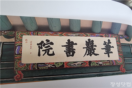 그림 2. 전남 장성, 필암서원 현판, 진짜 사액 현판은 검은 망사천으로 가려져 있다. 임금님의 글씨를 함부로 볼 수 있는 것이 아니기 때문이라고 한다.