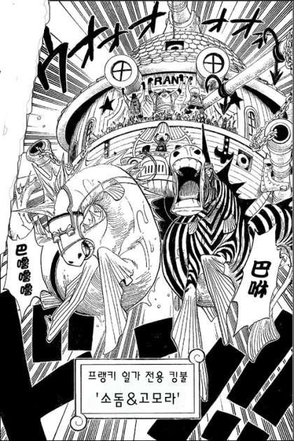한 두 개가 아닌데요, 이를테면 워터세븐 편에서는 소돔과 고모라라는 해마가 등장합니다. 소돔과 고모라는 성경에서 유명한 도시의 이름이죠.
