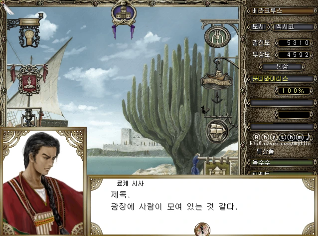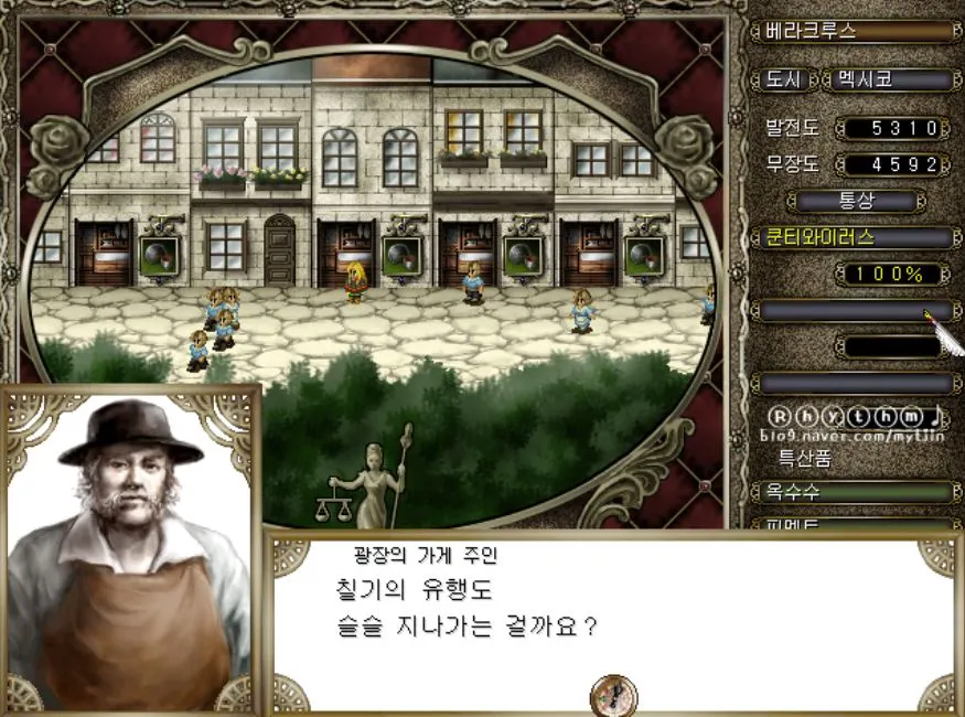 또 대항해시대를 해보신 분들은 선교사가 특정 물품을 유행시킨다는 것을 아실 겁니다. 고무라던가 말이죠. 그리고 오른쪽 그림을 보시면 우솝의 석상에 고무 "전도사"(덴도시) 우솝이라고 쓰여있습니다. 샨도라인들은 라틴아메리카 원주민에서 모티브를 얻어 만든 종족인데, 몽블랑 노랜드가 수열을 치료해준 의료선교사였다면 우솝은 고무를 전해준 고무전도사 였던 것입니다!