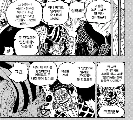 버기와 크로스길드는 자본주의적 개인주의자를 대표합니다. 이상세계관이라기 보다는 천룡인의 지배(카스트 주의)는 내버려 둔채 자신의 능력으로 생존하려는 인생관입니다. 그래서 크로커다일은 자신의 조직을 해적단이 아니라 "바로크 주식회사"라고 이름 붙인 것이고, 미호크는 뛰어난 힘에도 불구하고 동료를 만들거나 사람을 구하는데는 관심이 없는 것입니다. 난다긴다하는 사람들이 모인 크로스길드(상인조합), 자신이 잘 사는데는 좋은 방법이지만, 능력없는 사람들은 알 바 아닙니다.