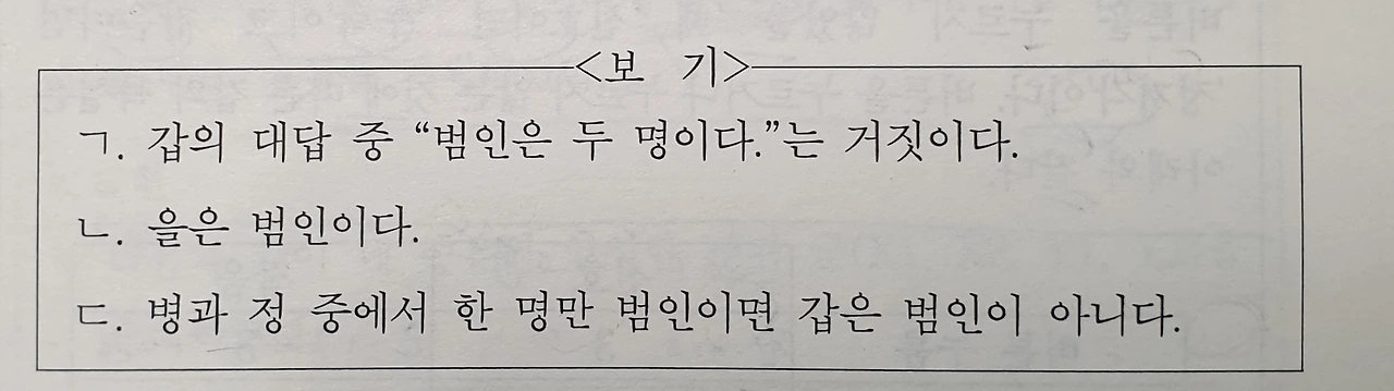 보기판단을 정말 못하겠다면 마지막으로 역이 성립하는지 보세요. 단박에 알 수 있다면 거짓인 걸 확신할 수 있습니다.