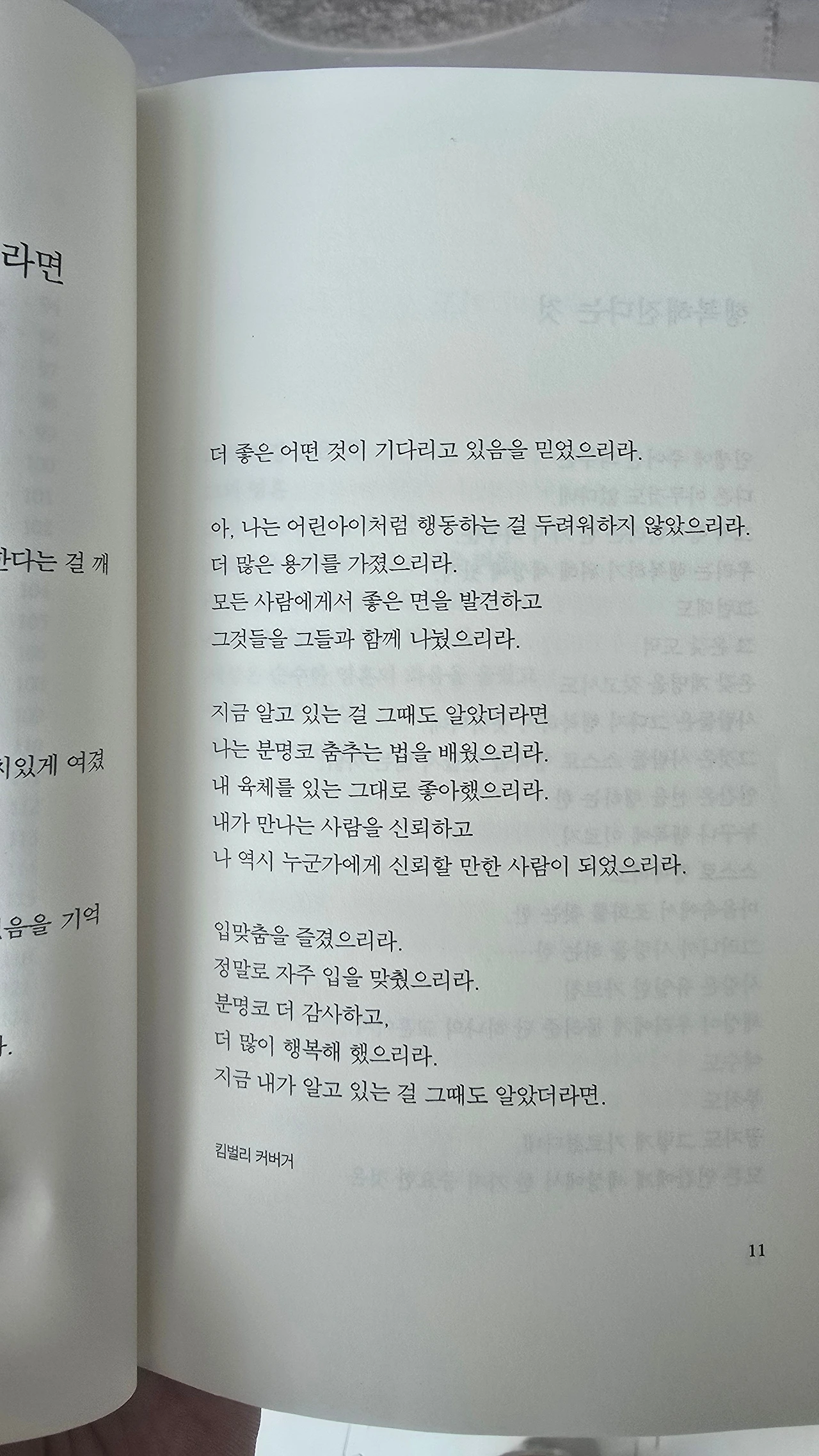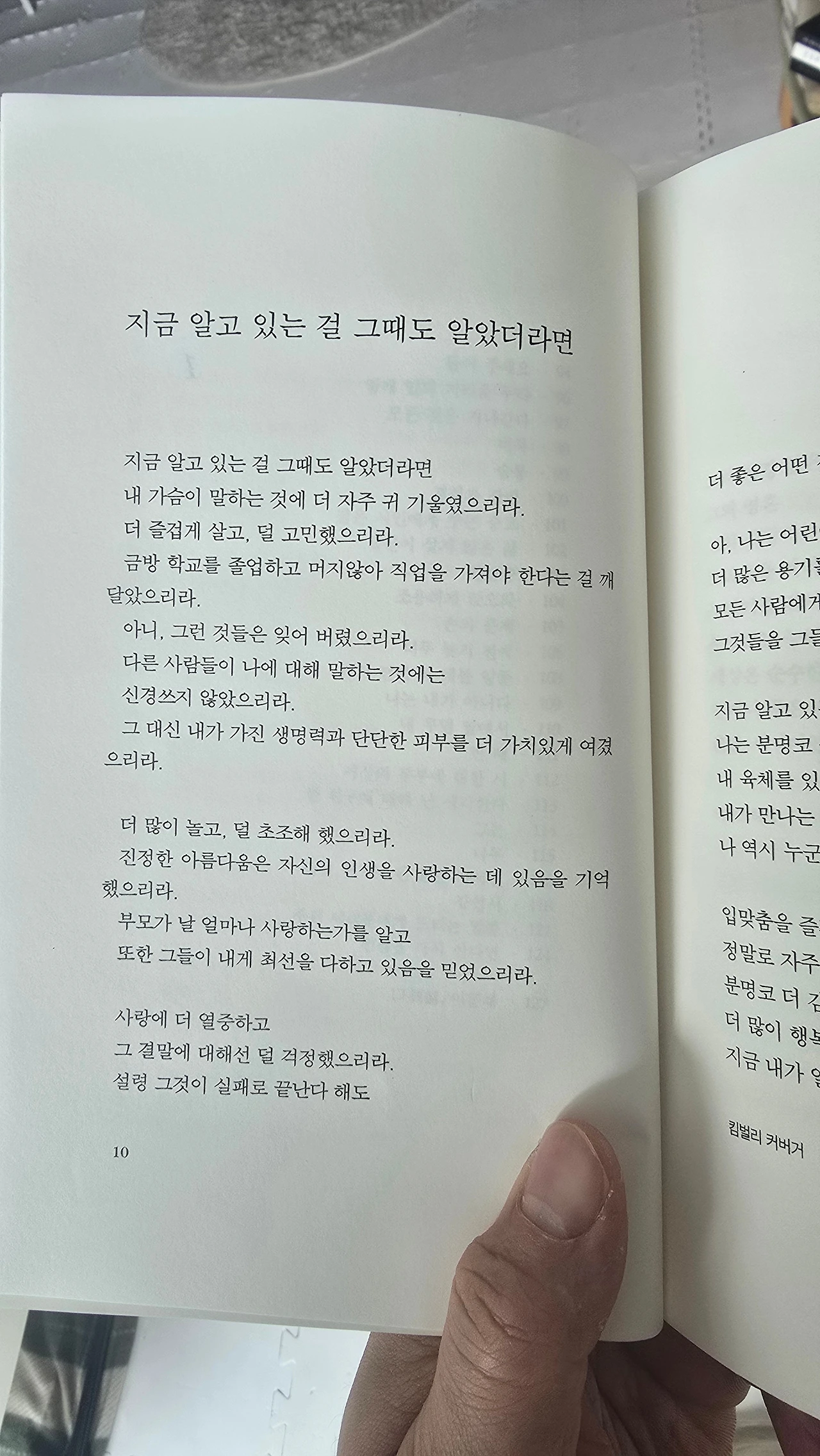 "지금 알고 있는 걸 그때도 알았더라면 네 가슴이 말하는 것에 더 자주 귀 기울였으리라.