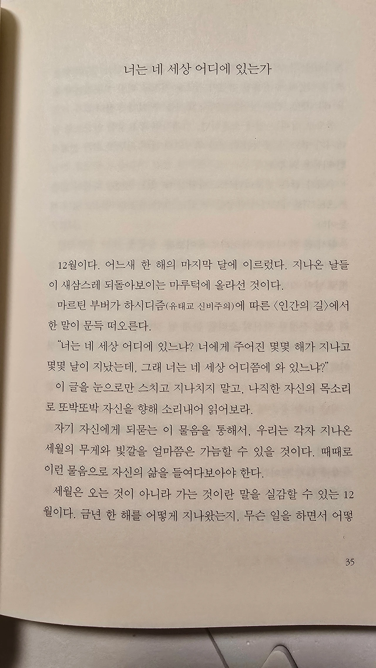 "너는 네 세상 어디에 있느냐? 너에게 주어진 몇몇 해가 지나고 몇몇 날이 지났는데, 그래. 너는 네 세상 어디쯤에 와 있느냐?"