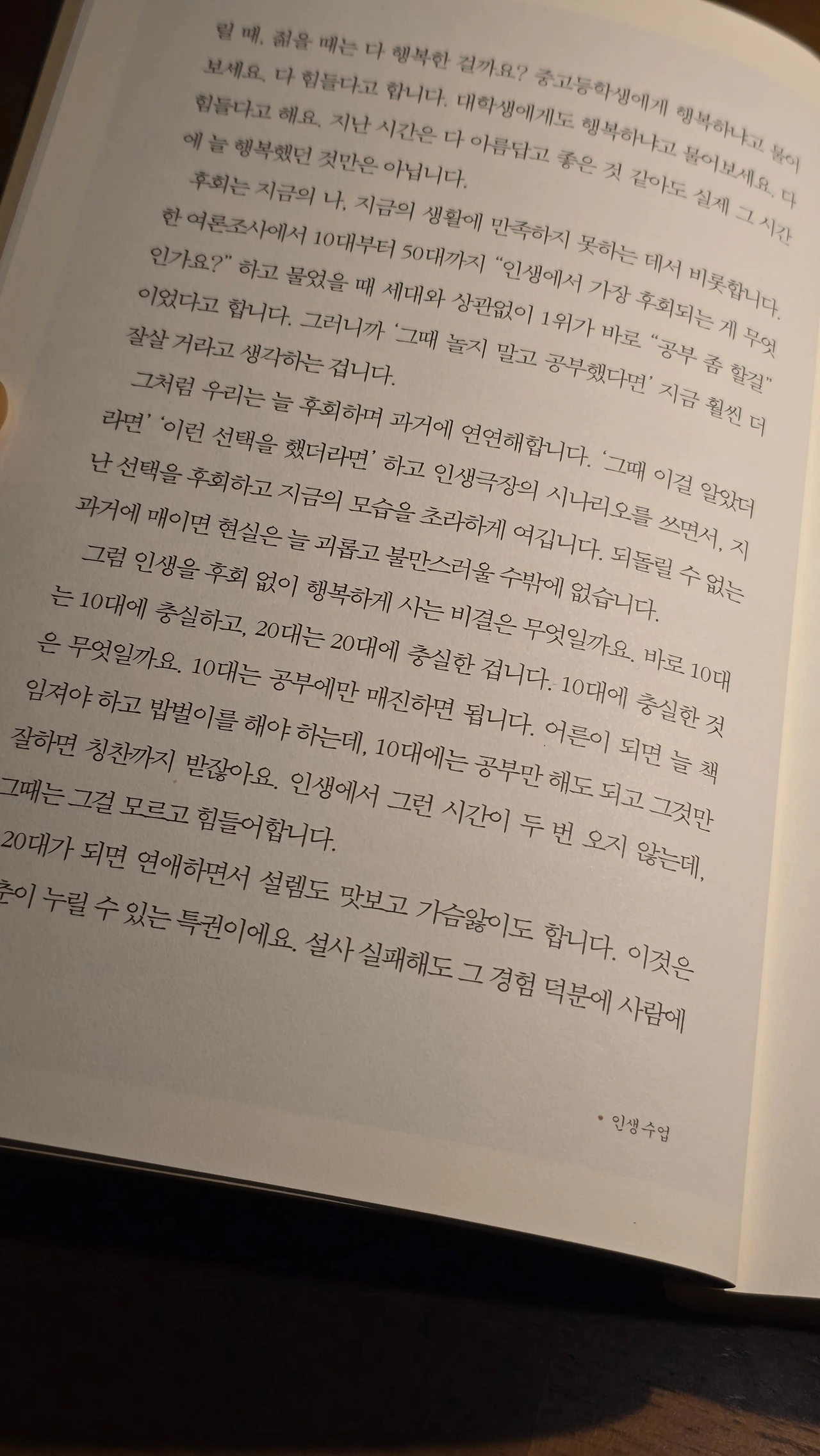 10대에는 10대에 충실하고, 20대에는 20대에 충실한 것입니다.