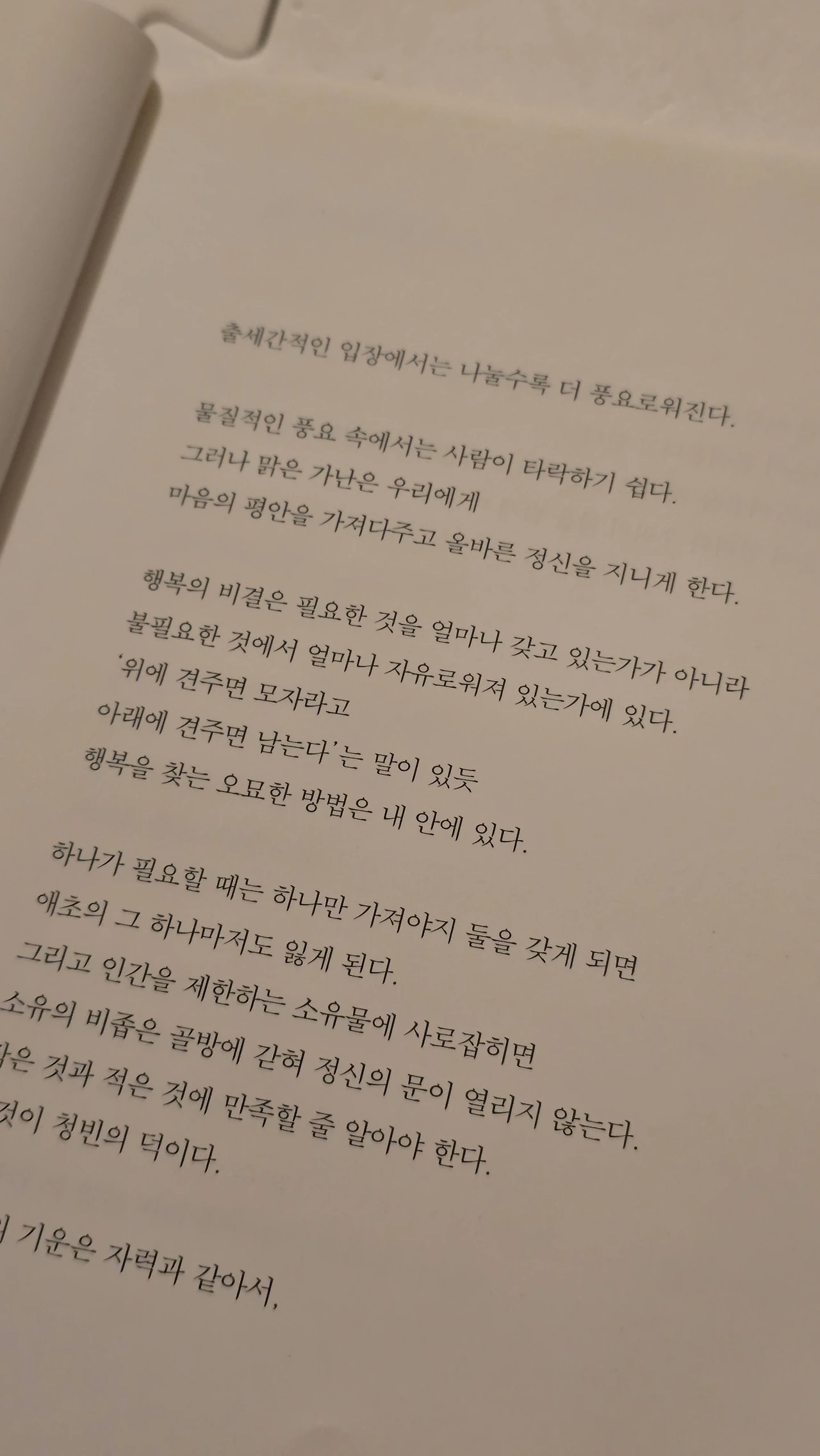 불필요한 것을 덜어내고 있는 것들에 집중해야 한다는 말에 깊은 공감을 한다.