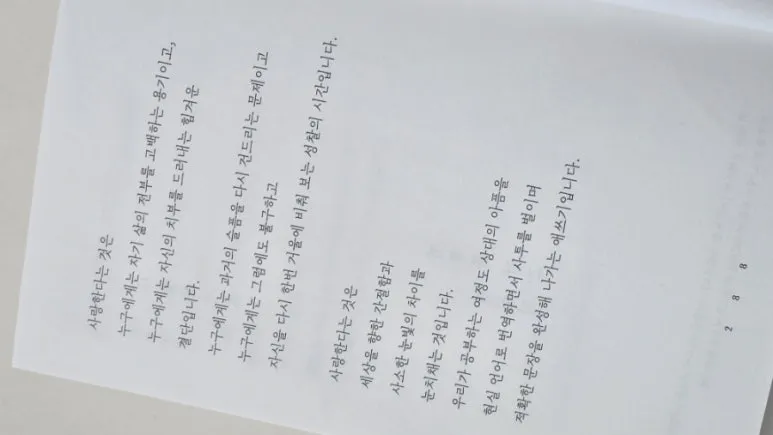 "사랑은 불가능도 가능하게 만드는 혁명이자 한 사람의 운명조차 바꾸는 위대한 출발입니다. 사랑할 시간도 얼마 남지 않았습니다. 지금 바로 내 삶의 모든 것을 사랑하세요"