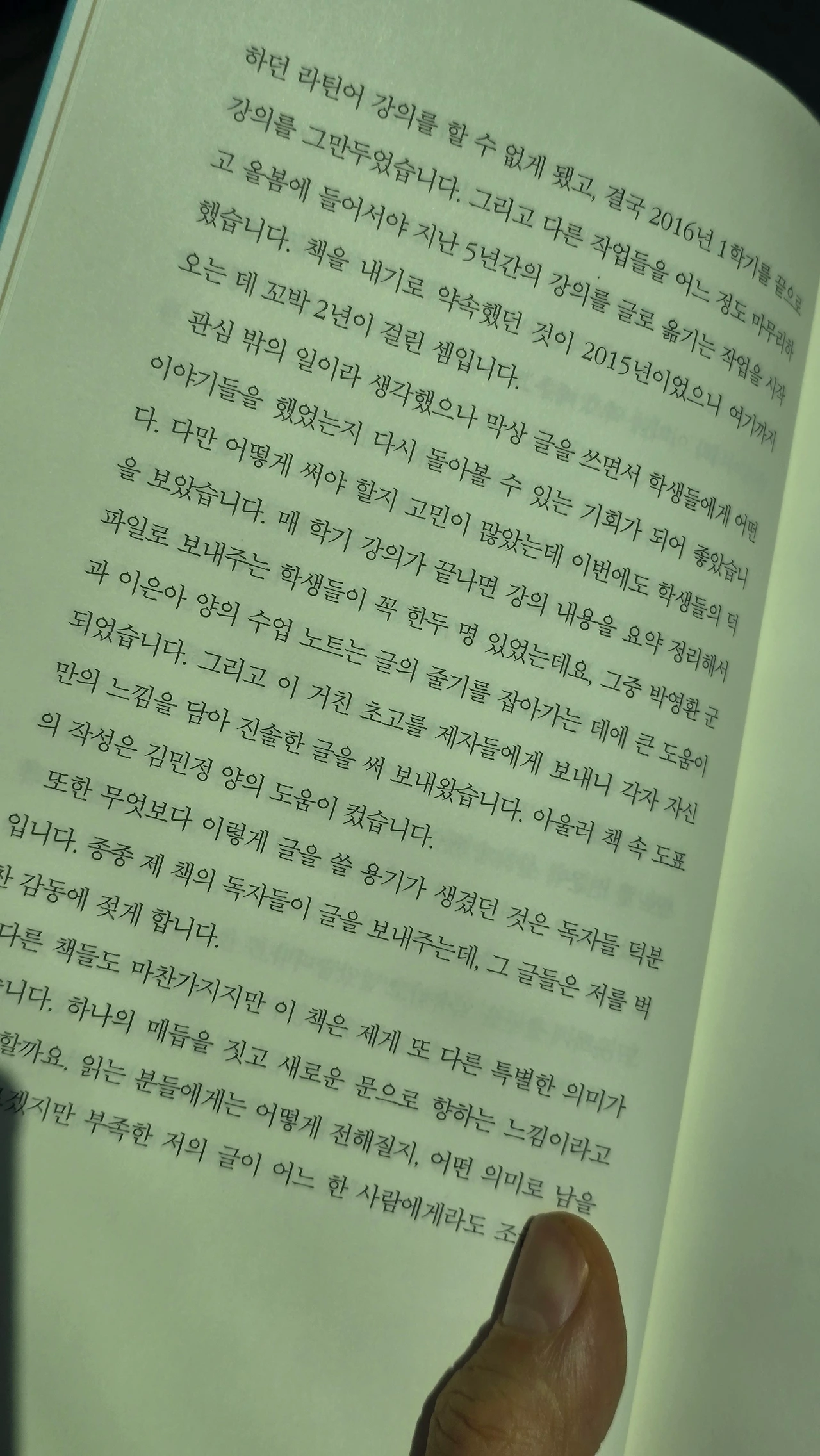 "무엇보다 이렇게 글을 쓸 용기가 생겼던 것은 독자들 덕분입니다. 종종 제 책의 독자들이 글을 보내주는데 그 글들은 저를 벅찬 감동에 적게 합니다.