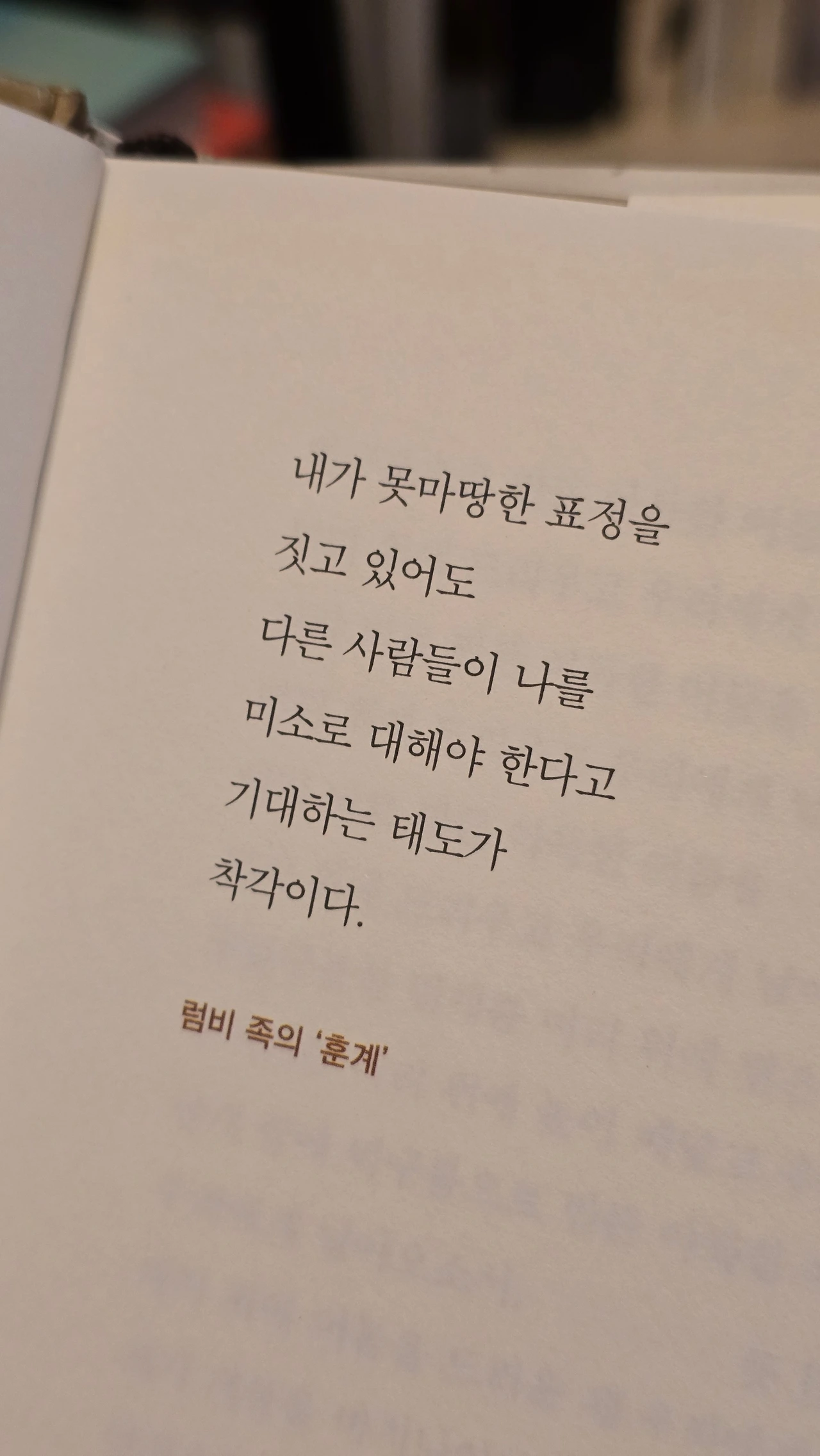 다른 사람들이 나를 미소로 대해야 한다고 기대하는 태도가 착각이다"