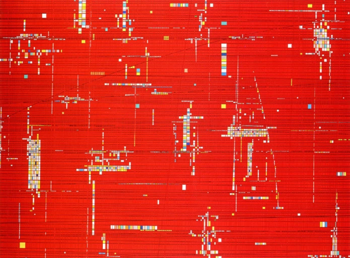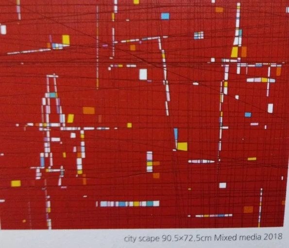 직선들로 인해 만들어진 셀 수 없이 많은 아주 자그마한 사각형들은 다양성을 상징하는 듯 했다. 종전의 사회, 즉 자본주의가 도입되기 이전의 사회에서는 경쟁보다는 협력이 주된 사회였다. 하나가 되어 ‘생존’ 자체가 그들의 목적이었다. 허나 산업혁명 등을 거치며 기본적인 의식주가 해결되면서 실존적인 영역보다 그들을 표현해주는 본질적인 영역이 부각되어왔다. 여기에 자본주의 체제가 맞물려 경쟁사회의 시대가 도래하게 된 것이다. 이 경쟁이 수많은 병폐를 낳은 것도 사실이지만 또한 수많은 자기표현욕구가 비롯되어 현재의 다양성을 만들어주었다. 이것이 작가가 직선을 통해 생성된 다양한 모습의 사각형으로 전달하려하던 것이었나 싶다. 또 하나 그 다양성들 사이에서 우리는 희망을 발견할 수 있다. 하나만 바라보는 고정관념에 얽매어있지 않고 다양한 관점을 통합해 새로운 발전으로 이어지는 혁신, 결국 다양성에서 나온다. 이 수많은 사각형들 중 몇몇의 사각형들에 초록색, 흰색, 파랑색 등이 칠해져 있는 모습은 앞서 말한 혁신에 대한 희망, 경쟁사회의 부정적 요소가 아닌 긍정적 요소를 말하고 있는 듯하다.