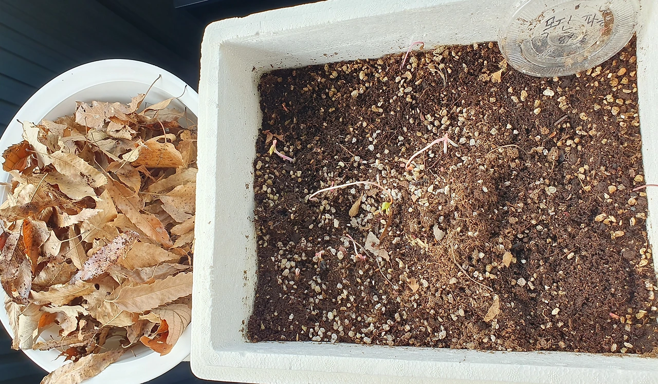 -스티로폼 박스에 파종한 모란 씨앗-