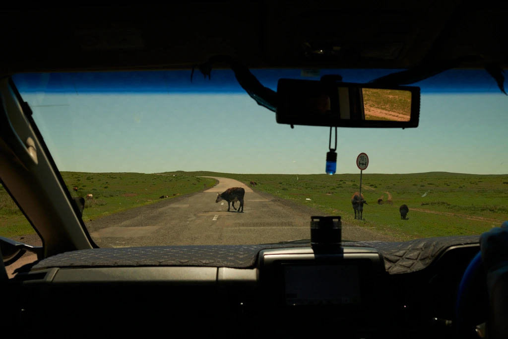 기사님은 소떼가 지나가기를 기다리느라 멈추거나 속도를 줄였다.