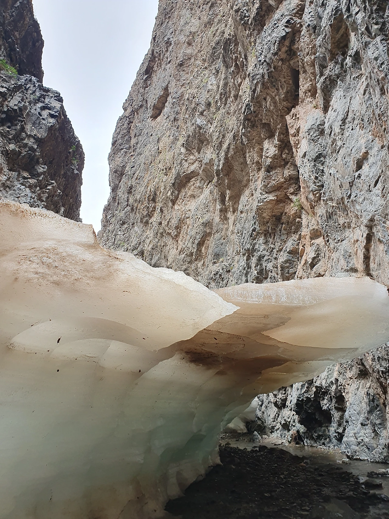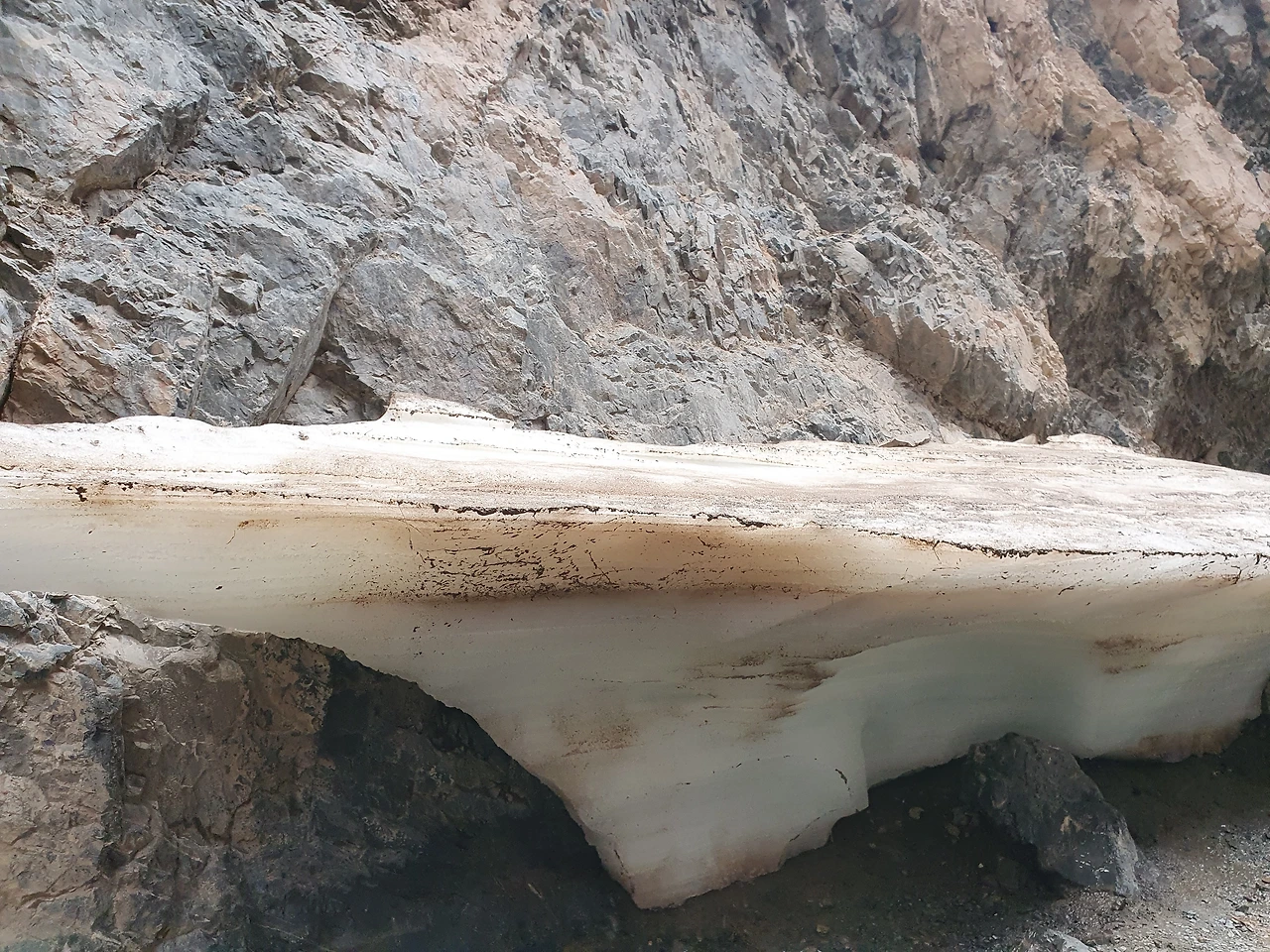 (7월 16일, 얼음이 녹지 않은 계곡 사이로 허리 숙여 걸었음)