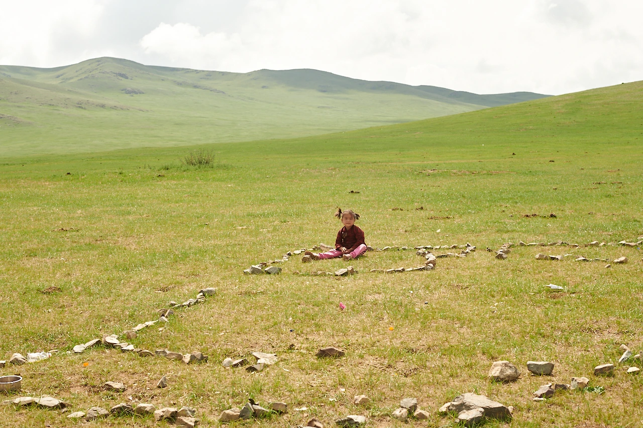 남는 시간은 초원 바닥에 자갈돌을 수십 개 놓아
