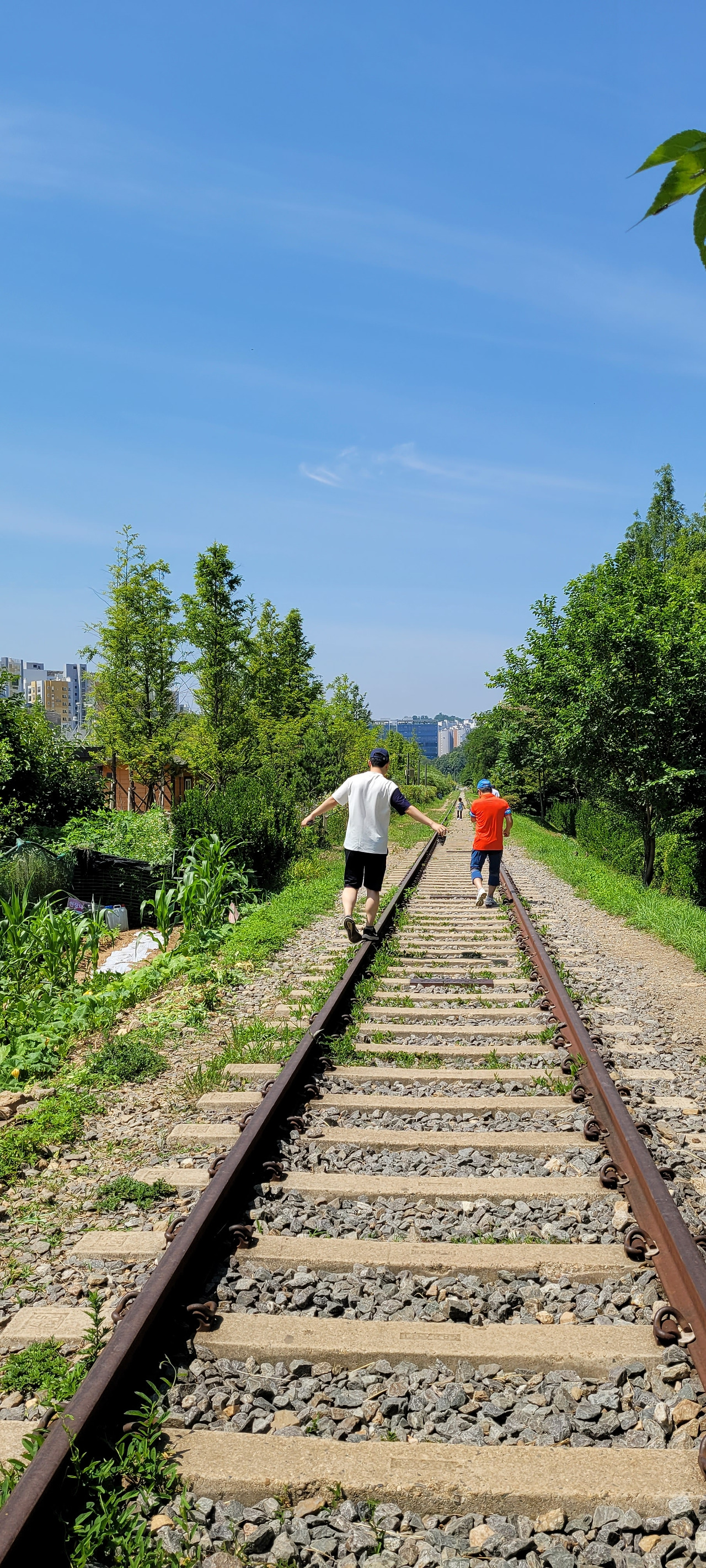 이렇게 가까운 곳에 아담하고 있을 건 다 있는 곳이 있다는 사실이 신기할 정도로 좋은 곳이더군요. 찾아보면 우리나라에 좋은 산책길이 참 많아요. '푸른 수목원' 초입에는 운행을 멈춘 '항동기찻길'이 있습니다. 아름다운 숲길을 양 사이드에 두고 기찻길이 있어 연인이나 가족들이 함께 와서 사진 찍고 대화 나누면 좋을 것 같았습니다. 친환경 청정수목원이라 관리가 굉장히 잘 되어 있었습니다. 오전에 가볍게 다녀올 만한 곳입니다. 휴일인데도 무더위 때문인지 간 날엔 주차가 적더군요.