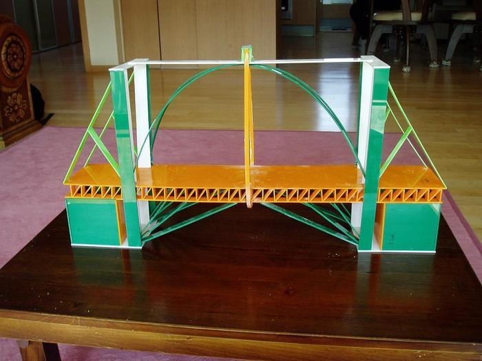 이 아크릴교각은 큰애가 고등학교 1학년때 기술 수행평가 과제로 만든 거랍니다. 순수재료인 아크릴만으로 교각 축소판을 만들 것과 무게 10kg를 지탱해야 점수를 얻는 과제였어요. 자동차나 트럭 등이 다니는 다리는 엄청난 하중을 받는 것처럼, 학생들에게도 10kg이라는 무게를 견디는 다리를 만들라는 미션이었던 거죠. 다리의 종류는 어떤 모형이든 제한이 없었습니다. 조금만 힘을 줘도 부서지고 얇은 아크릴을 보니 저는 아무리 봐도 불가능해 보였습니다. 고민 끝에 용석이는 아치교를 만들겠다 하더군요.