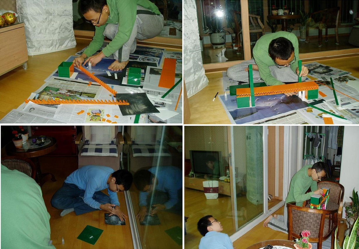 큰 애는 하나하나 아크릴을 끌로 자르고 순간접착제로 붙이는 작업을 시작으로 해서 교각이 완성될 때까지 장장 9시간이 걸렸습니다. 동생도 사포질을 해주면서 열심히 형을 도왔습니다. 처음엔 하루도 맘 편히 쉬지도 못하게 주말과제를 내주나 했는데, 몰입하며 열심히 하는 모습을 지켜보다 보니 잠시나마 학업스트레스를 잊게 해 준 시간이었다는 생각이 들더군요.