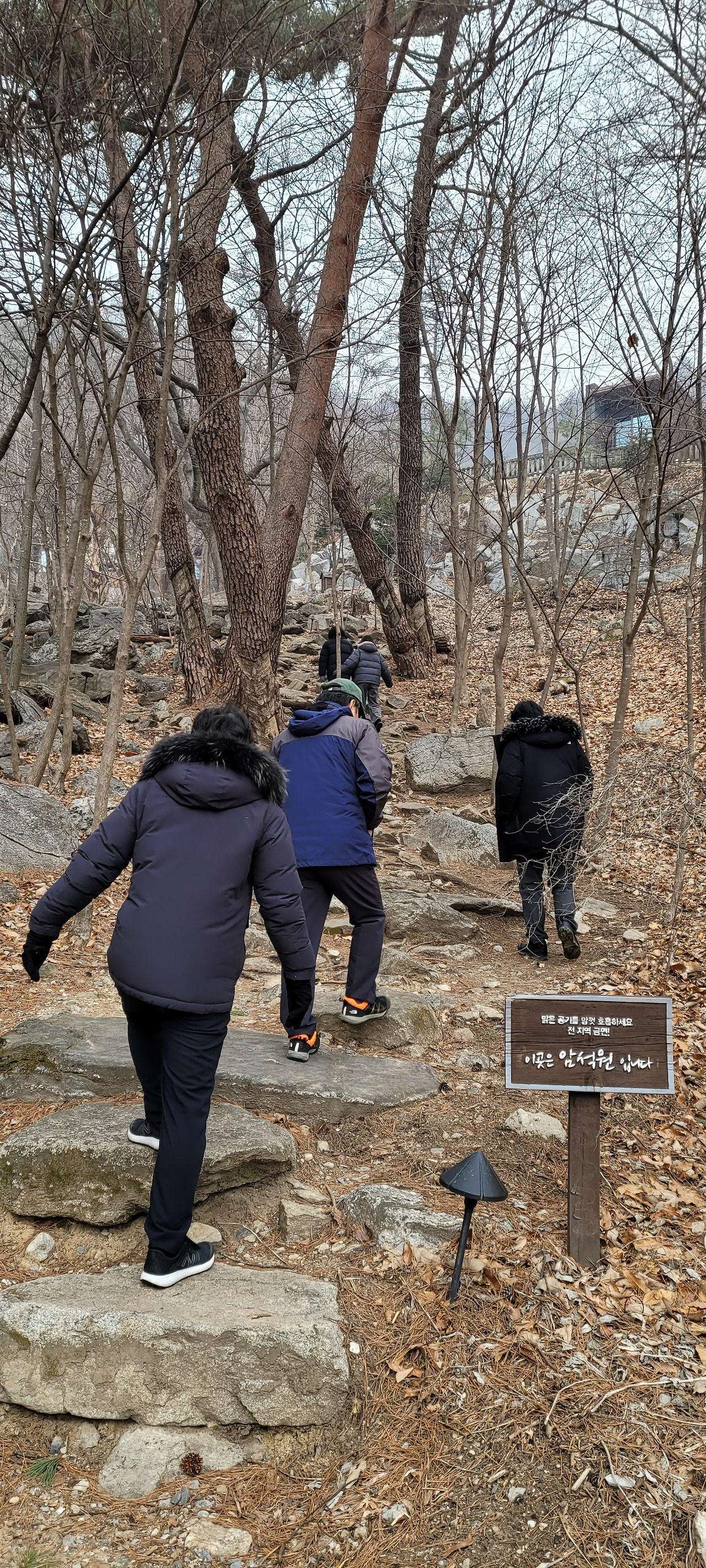다음날 우리는 조식을 든든히 먹고 숙소로 올라와 당연한 듯이 주론산 둘레길 코스를 돌았습니다 겨울아침 짜릿한 찬 공기가 느슨해진 정신줄에 찬물을 끼얹는 느낌이더군요. 시끄러운 알람소리에 간신히 일어나 출근준비로 바빴던 일상을 하루아침에 잊은 시간이었습니다. 이미 우리는 자연에 적응하도록 세팅된 채 태어난 이유가 아닐까 싶었습니다.