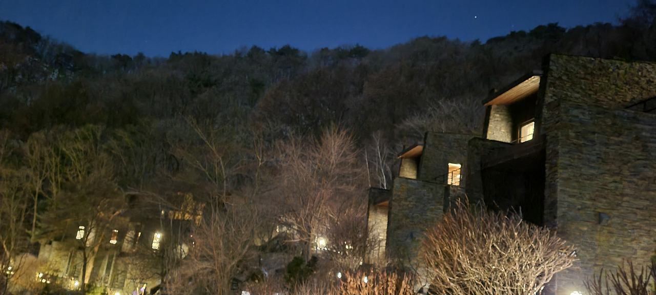 밤마실을 나오니 별장에 조명들이 조용히 빛나고 있었습니다.
