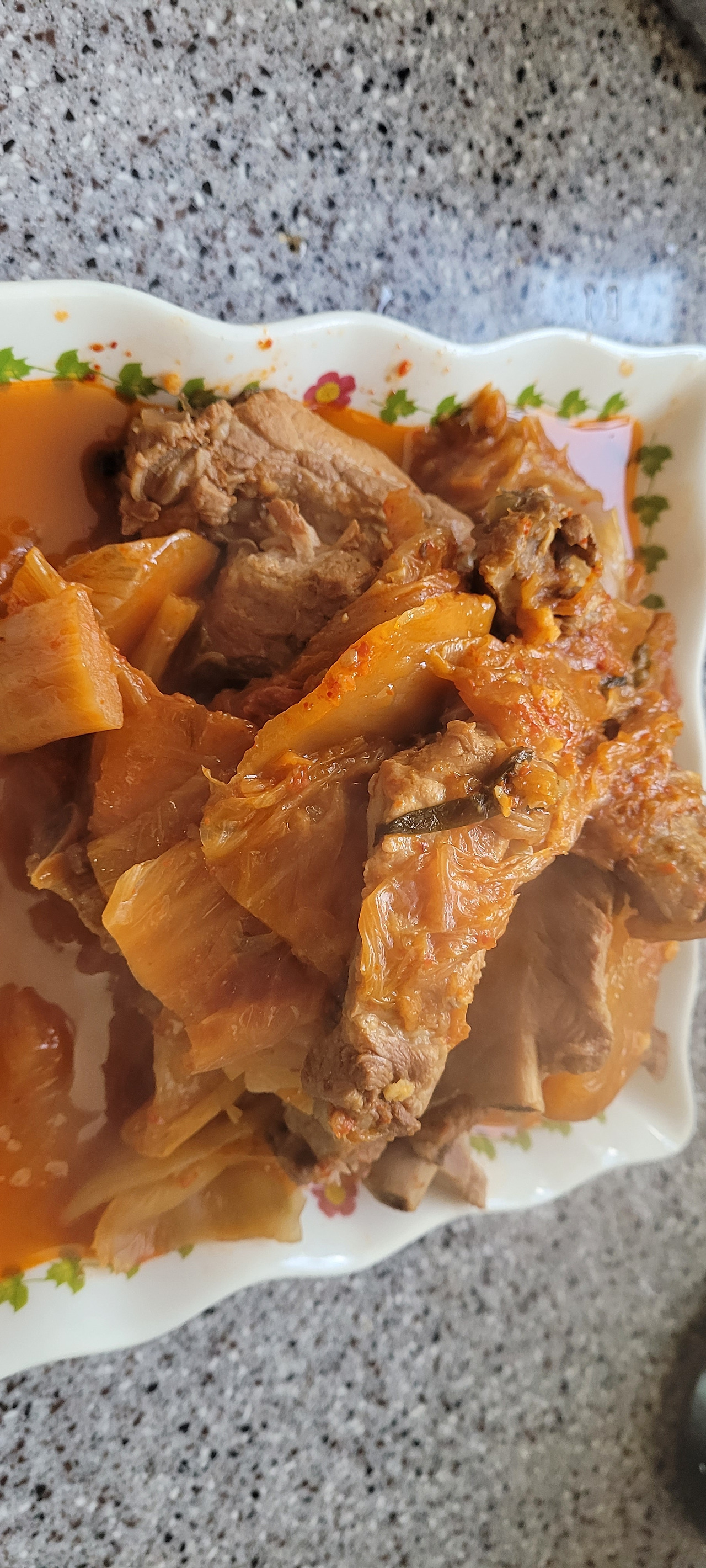 결과적으로 가장 인기 있는 메뉴였습니다. 특히 남편이 아주 좋아하더군요. 치아가 안 좋으신 분들에게 추천드립니다. 묵은지등갈비찜은 가격도 저렴한 데다 만들기도 쉬운 데 단점이라면 오래 끓여야 합니다. 하지만 정작 불 앞에서 뒤적이는 번거로움이 없으니 시간이 오히려 절약되는 기분입니다.