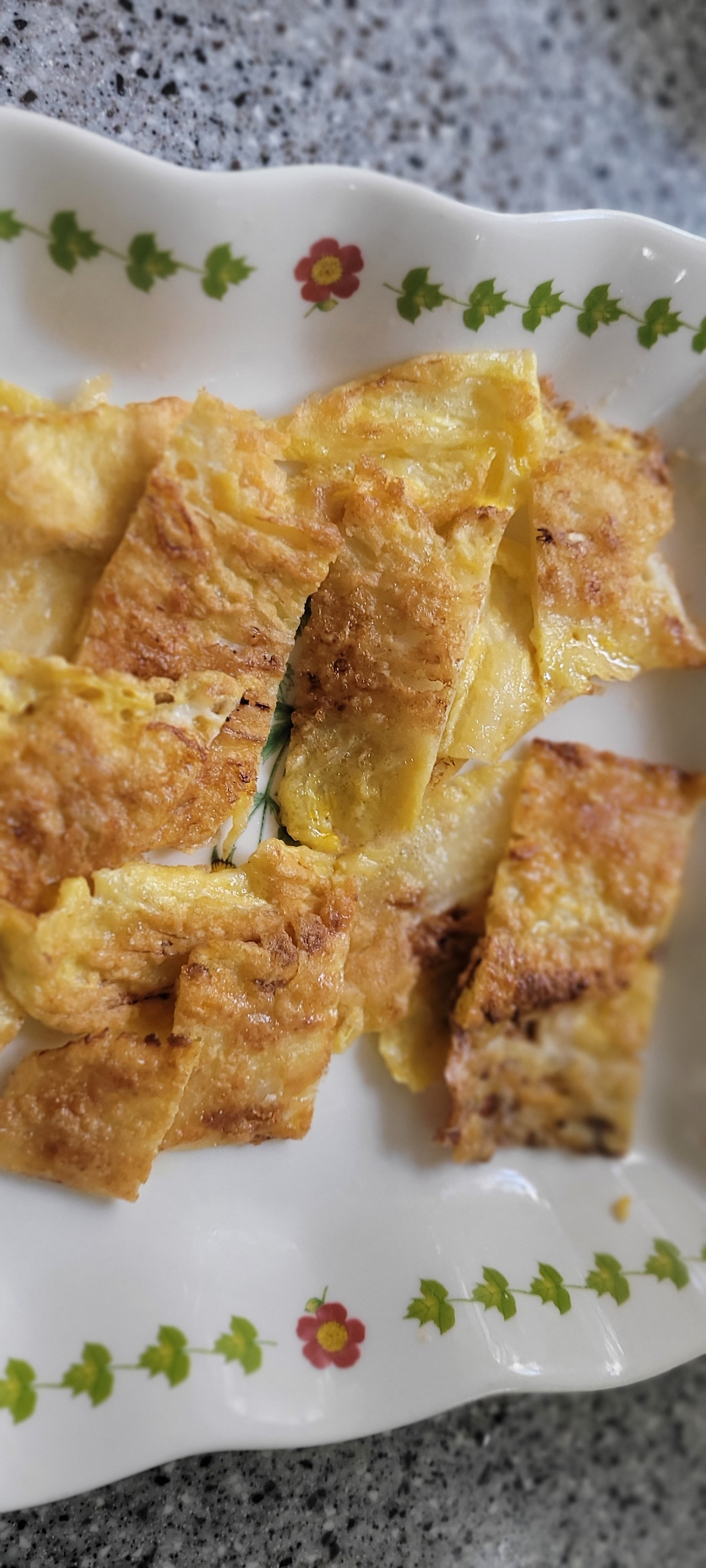 4. 계란 물에 앞 뒤로 묻힌 뒤 프라이팬에 들기름과 식용유를 1:1로 두른 뒤 노릇하게 부쳐냅니다.