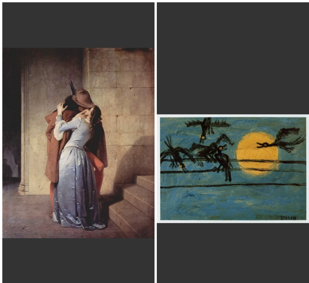 그동안 무심코 보았던 작품을 다르게 바라보게 도와준 두 작품이 있다. 먼저 '입맞춤(프란체스코 하예즈)'이다. 독립에 대한 열망으로 이탈리아는 프랑스와 비밀리에 동맹을 맺게 된다. 독립운동가였던 하예즈는 이탈리아와 프랑스와의 동맹과 영원한 승리를 기원하는 작품을 그린 '입맞춤 1859(프란체스코 하예즈)'을 그린다. 이탈리아와 프랑스의 국기를 연인의 옷에 투영한 것이다. 재미있는 것은 각 국기에 들어가는 색이 하나씩 모자라는데 연인의 옷 색상이 공유하면 국기의 삼원색이 완성된다.