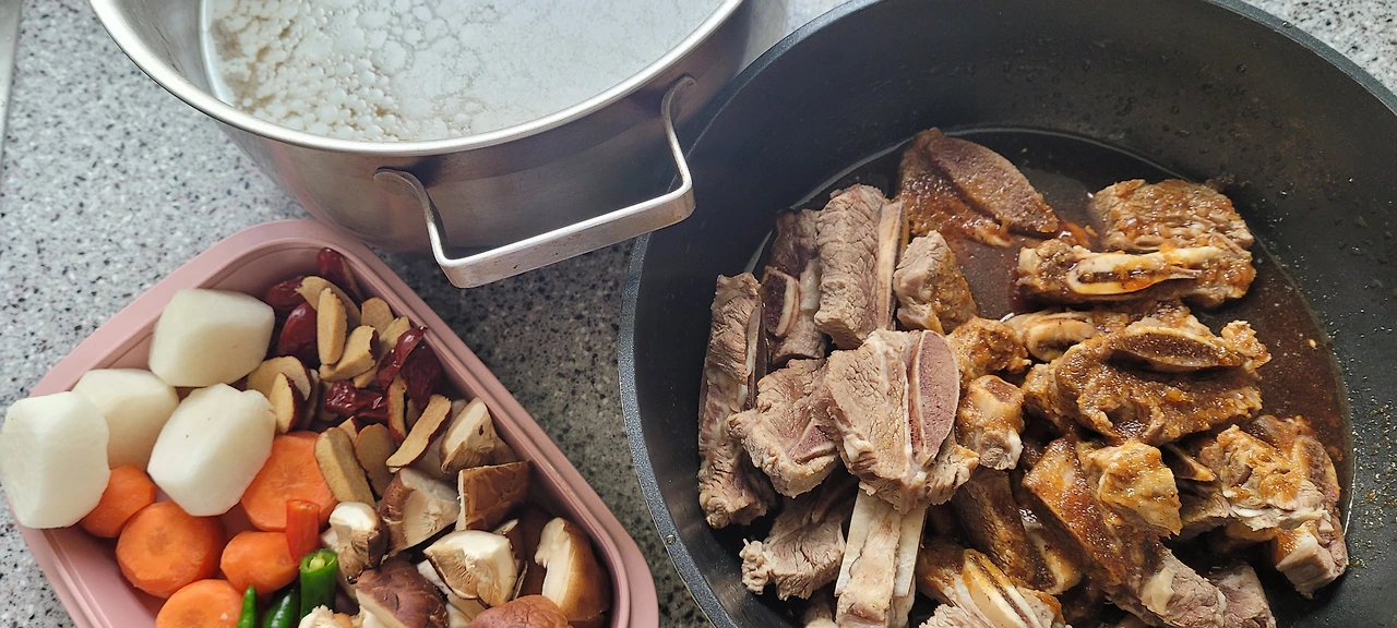 고급 한식 레스토랑에서 메인 메뉴로 등장하는 소갈비찜은 외식을 할 경우 가격대도 만만찮고 푸짐히 먹을 수 없다는 단점이 있습니다. 월요일 오전 대지에 열기가 달궈지기 전에 후다닥 마트로 뛰어가 수입소갈비 2kg 를 사가지고 돌아왔답니다. 한우는 가격도 비싸기도 하지만 소갈비 특유의 퍽퍽하고 질긴 식감과 누린내만 잡아주면 수입으로 해도 충분히 맛있게 먹을 수 있습니다.