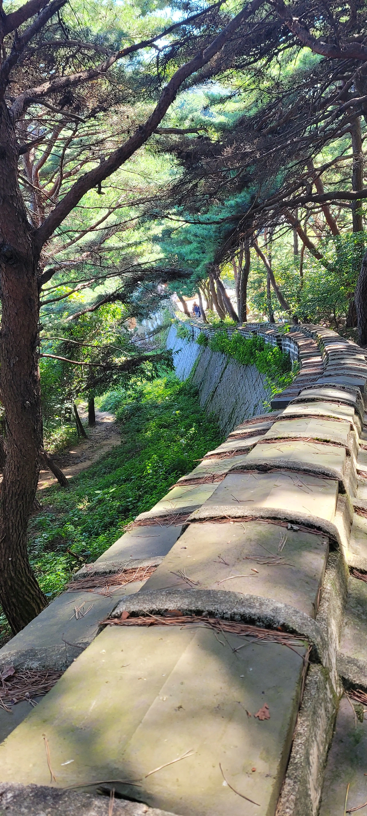 남한산성 둘레길은 관람객을 배려한 적당한 가파름과 완만한 경사로가 적당히 조화를 이루고 있었는데 편안한 수풀림의 공기는 장대한 소나무 군락이 위력을 가시 했다. 짐작건대 100년은 넘게 지탱해 온 소나무들의 위상은 하늘을 덮을 정도였다. 쫓기듯 지은 행성의 위축 앞에서도 편안함을 느낄 수 있었던 감정은 바로 위로하듯 안아주는 그들의 힘이었음을 깨닫는 순간이었다.