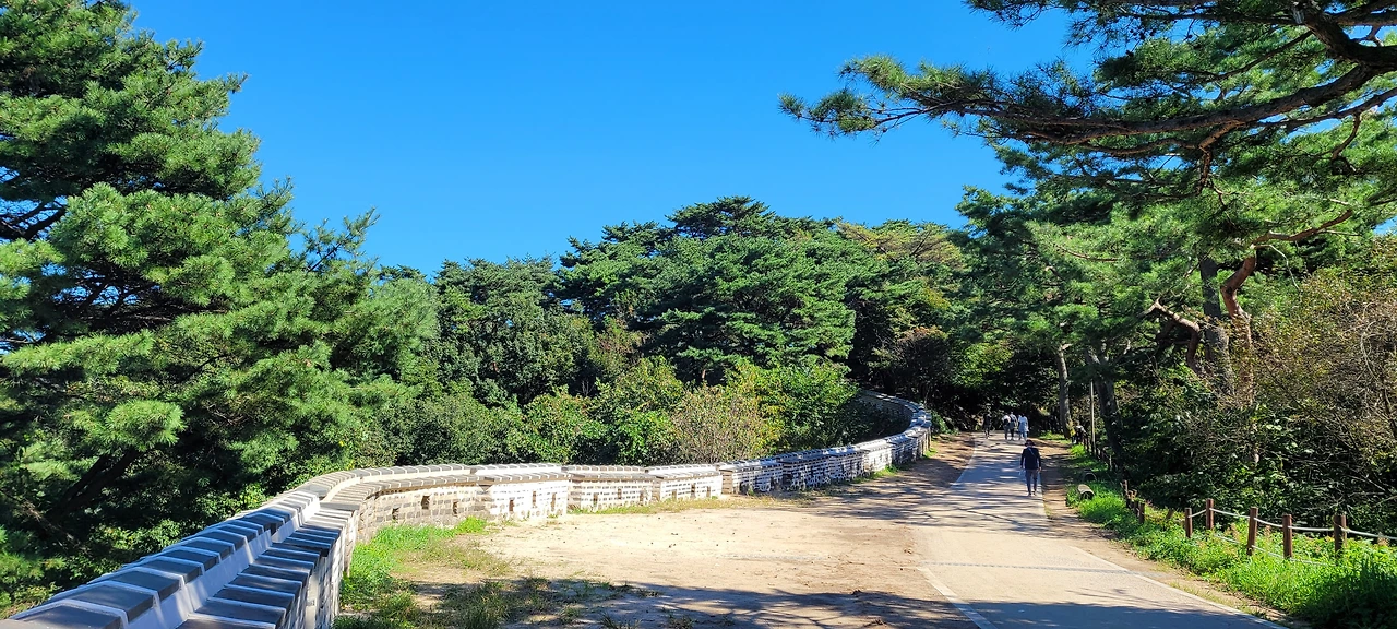 우리는 외행전을 둘러보고 의청문을 건너 담장 너머 보이는 거대한 소나무 군락지를 보다가 문득 깨달은 사람들처럼 서둘러 남한산성 둘레길로 발길을 향했다. 남한산성 둘레길은 총 5코스로 나뉘어 체력안배를 결정할 수 있도록 안내하고 있었는데, 우리는 산책이 목적이었으므로 가장 짧은 2코스(2.9km)를 선택했다.