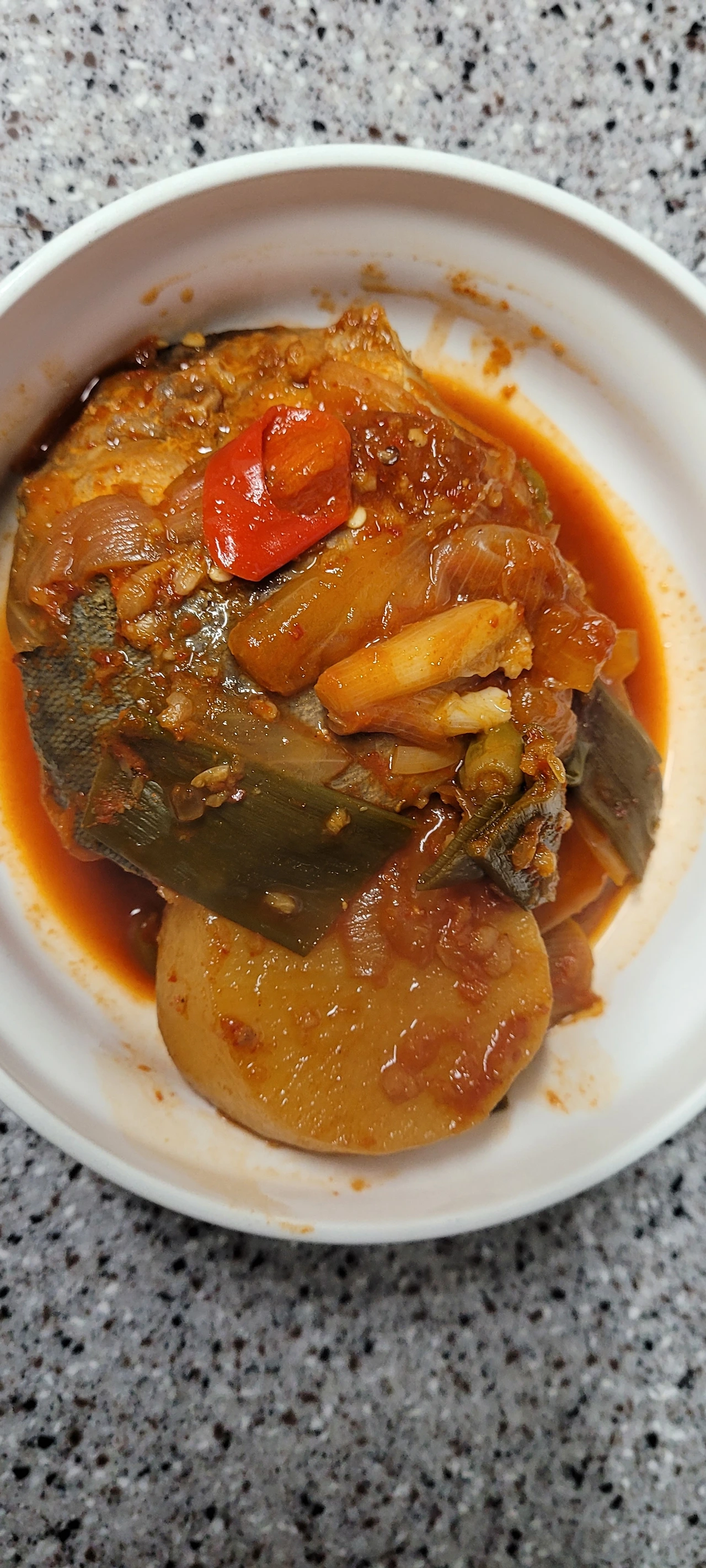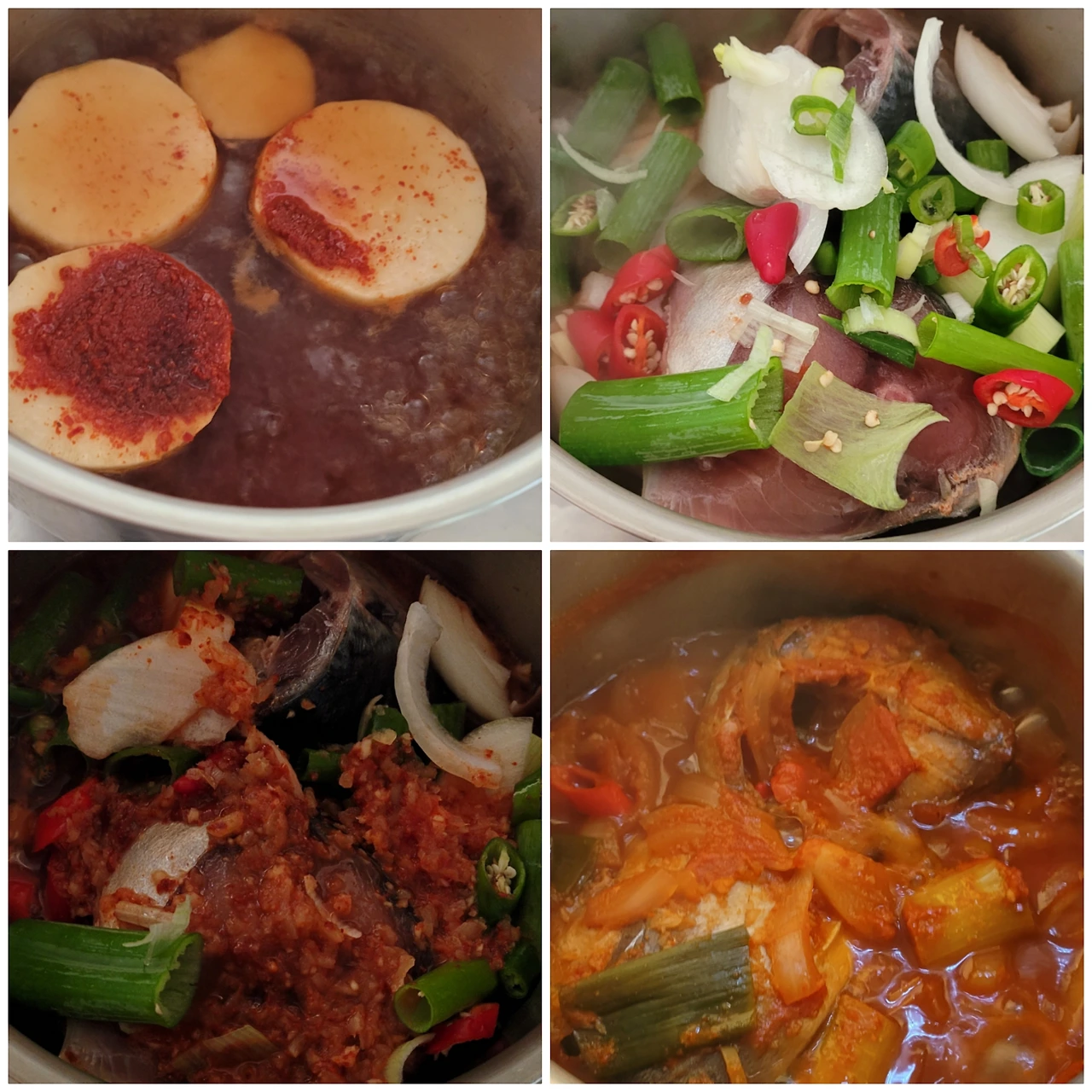 재료: 고등어 1마리, 무 150g, 대파 반대, 청양고추(2개), 양파 반 개, 고춧가루, 고추장, 간장, 간 마늘, 생강술, 참치액