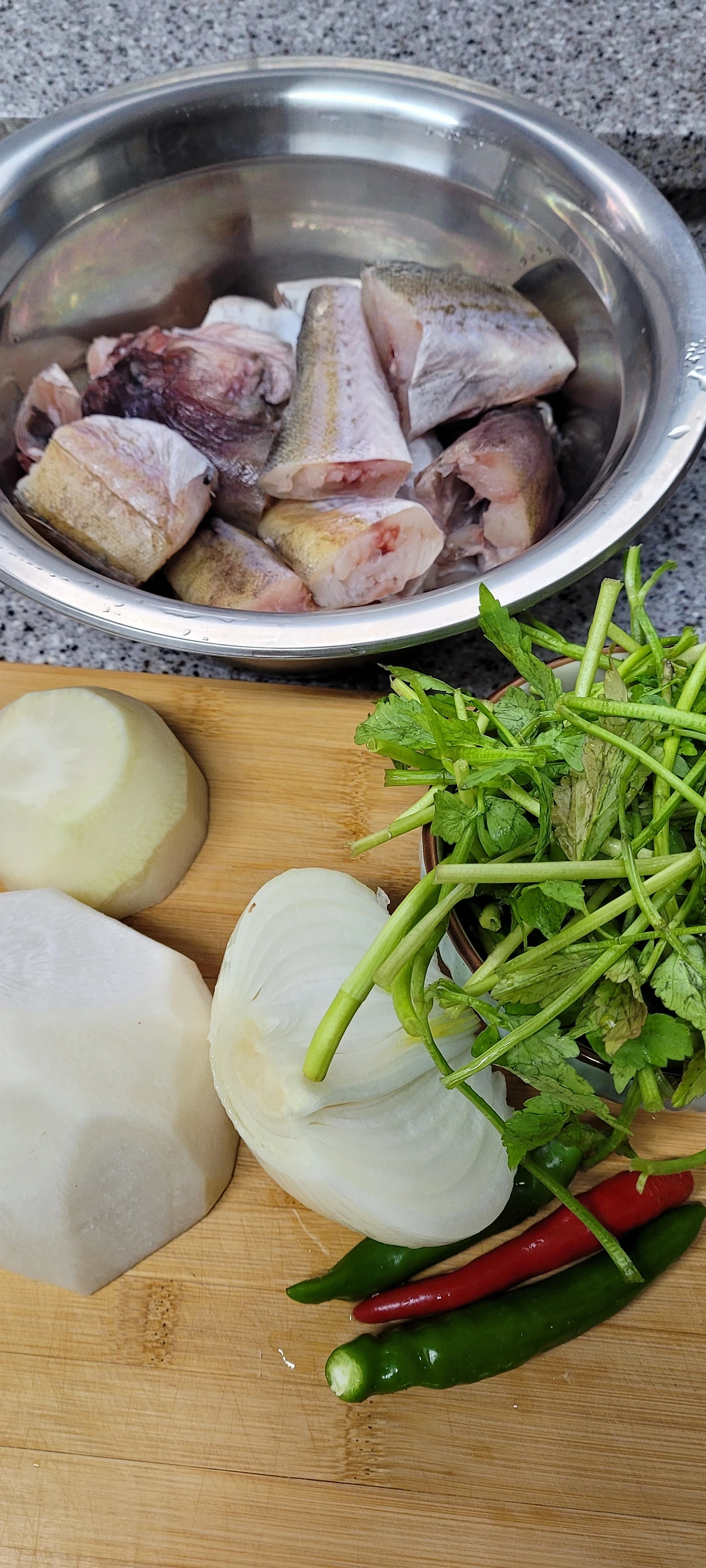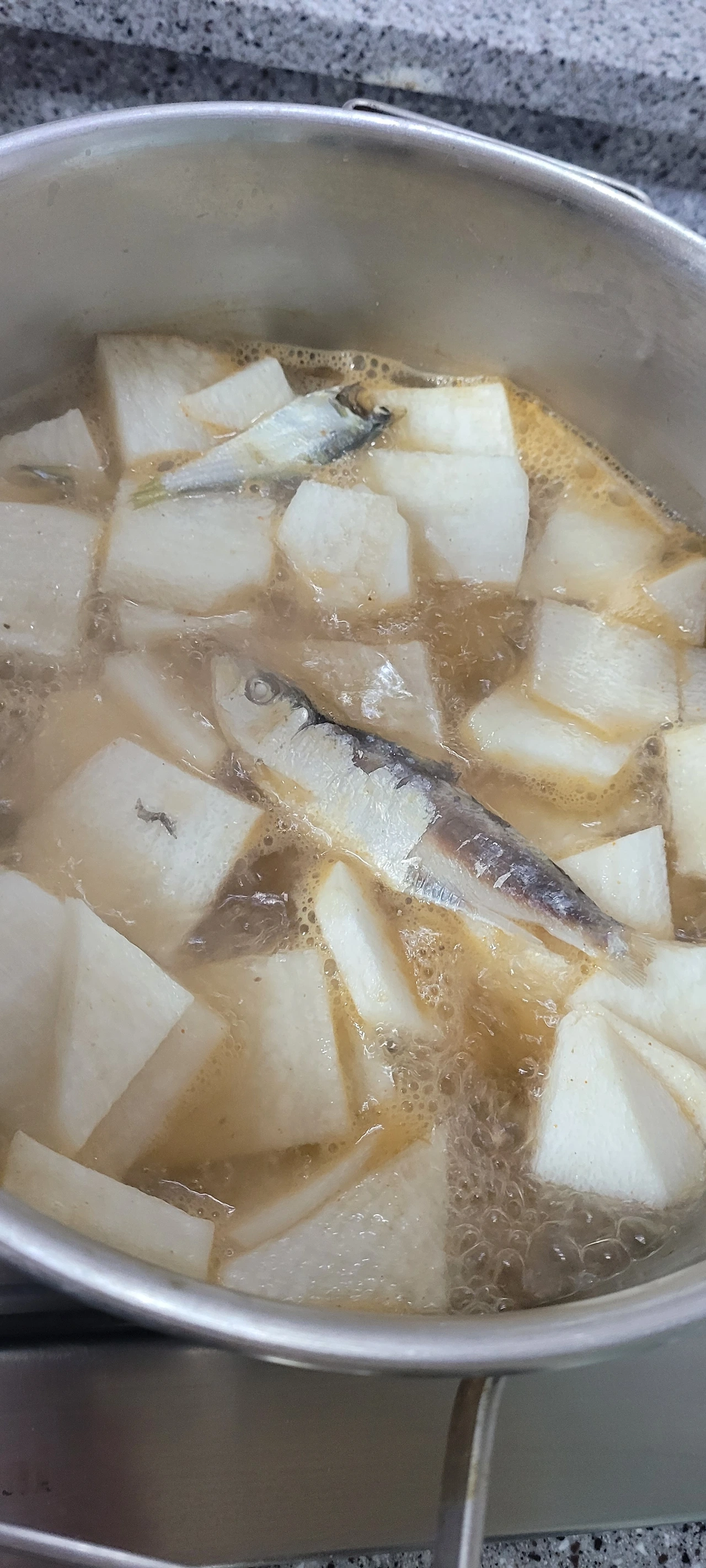 동네 재래시장을 느릿느릿 걷다가 동태 2마리를 구매했습니다. 꽁꽁 얼어있는 동태를 보자 시원한 미나리가 올려진 담백한 동태찌개로 보였습니다. 동태는 겨울철에 알차게 섭취 가능한 완전단백질 식품입니다. 운 좋게 곤이와 알이 들어있는 동태를 각각 구입해서 푸짐한 동태찌개가 완성되었습니다.
