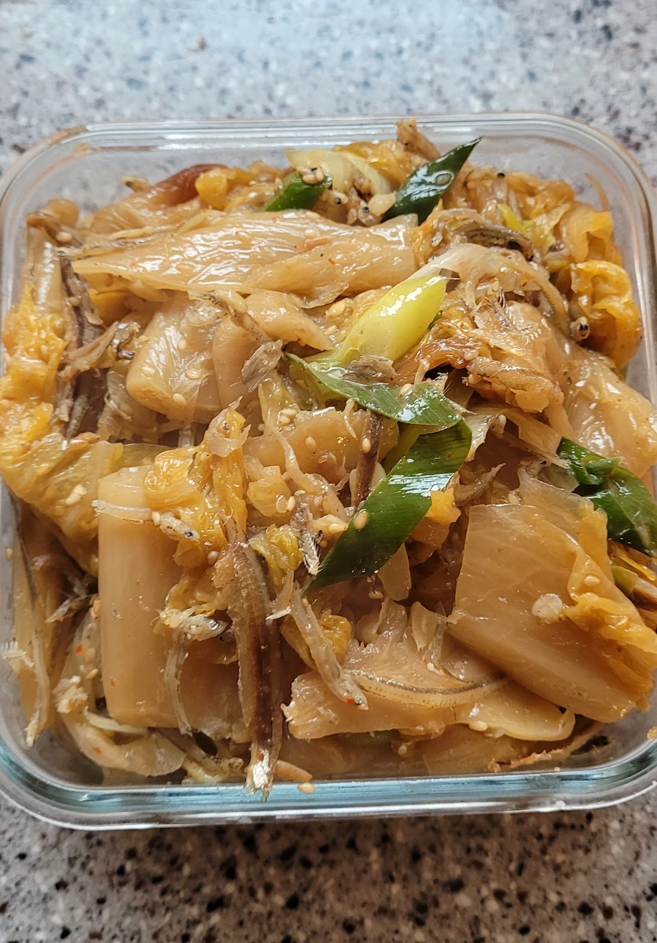 겨울철이면 빠지지 않고 해 먹는 반찬이 있습니다. 새로 김장을 하고 처치 곤란해진 일 년 묵은 묵은지인데 돼지고기를 넣어 먹기도 하고 다시 멸치로 깔끔하게 먹기도 합니다. 돼지고기를 넣을 때는 메인메뉴이고 멸치로 만들 때는 밥반찬입니다. 또 묵은지는 김치찌개를 하면 깊은 맛이 납니다.