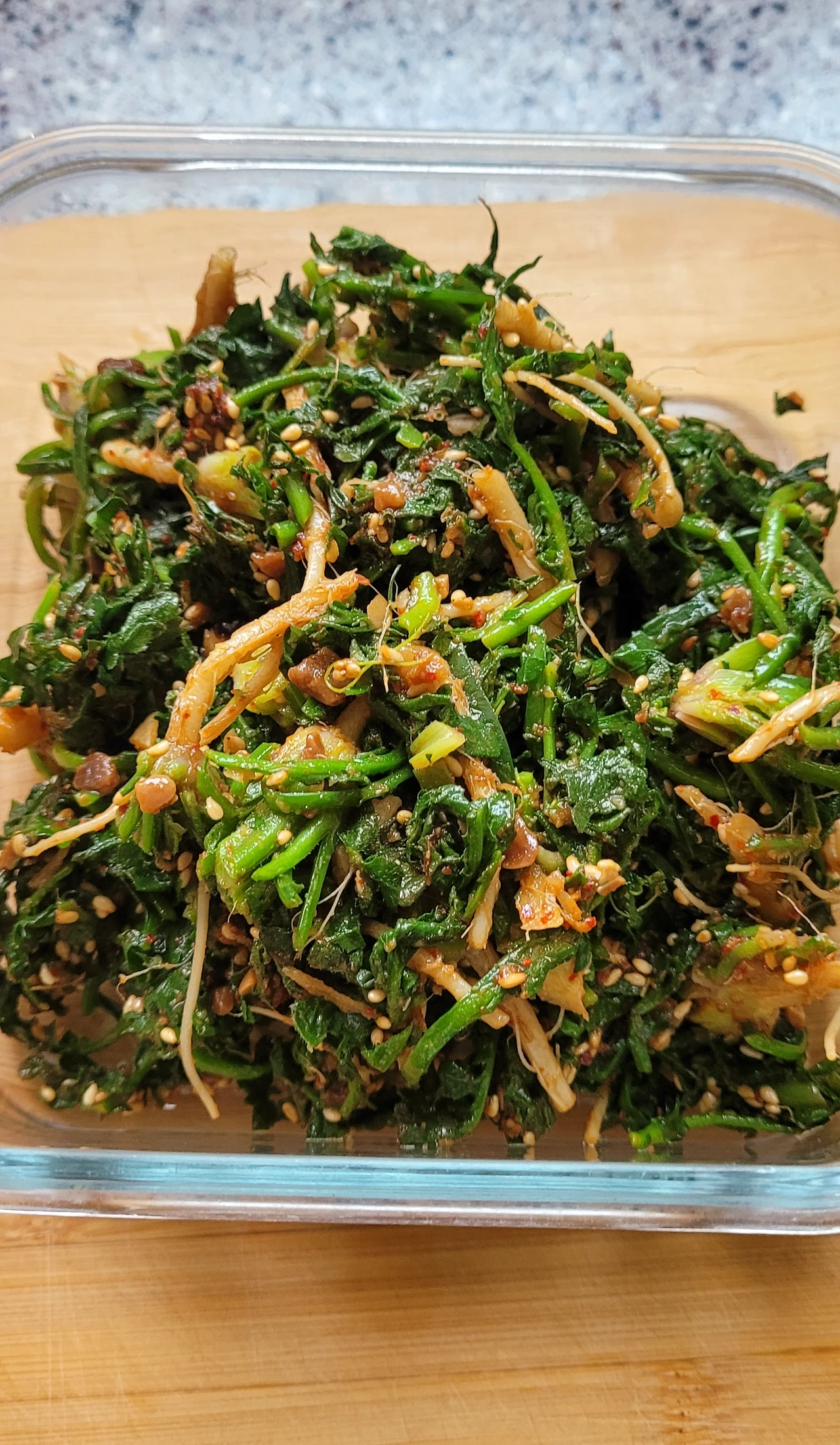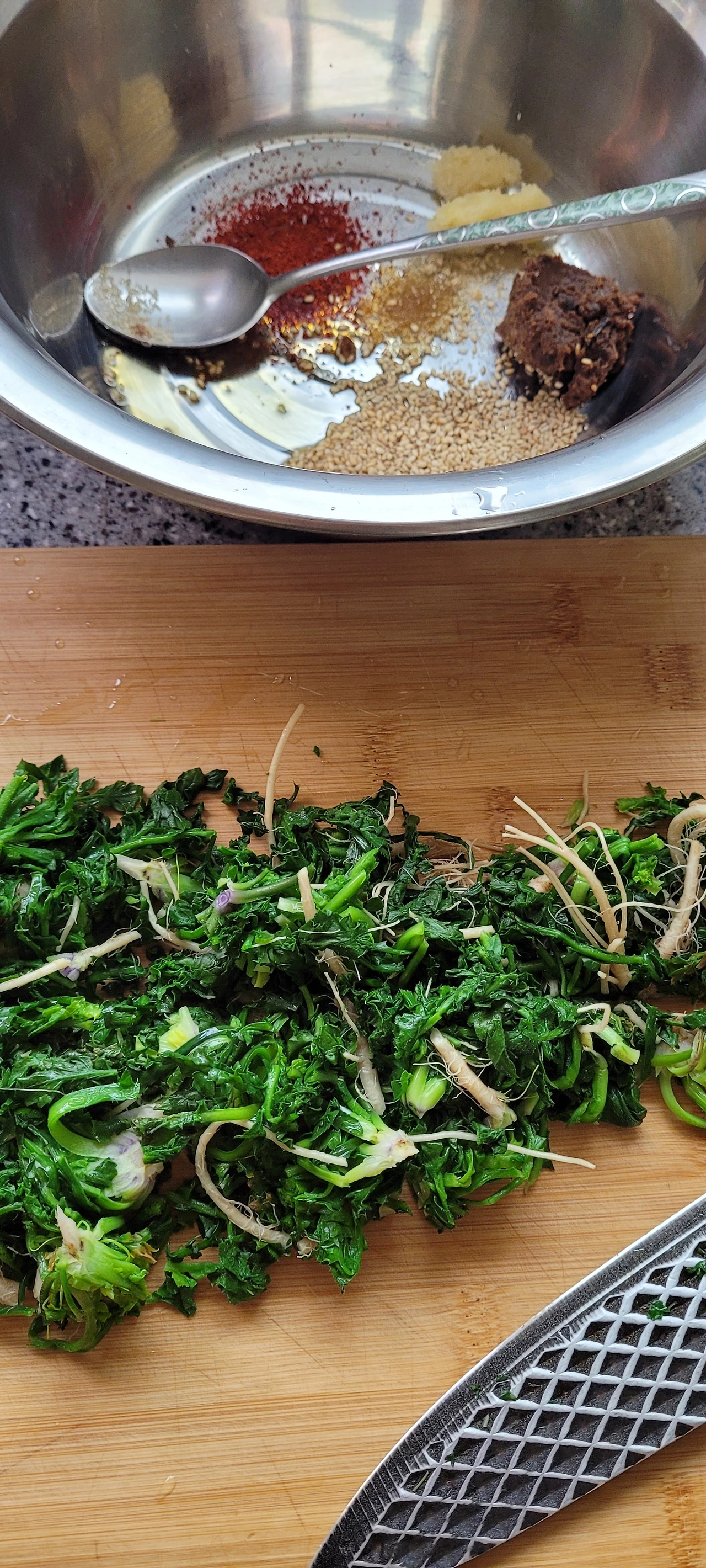 3. 물기를 꼭 짜서 빼준 뒤에 한 입 크기로 썰어 준비한 양념에 무쳐주면 끝.
