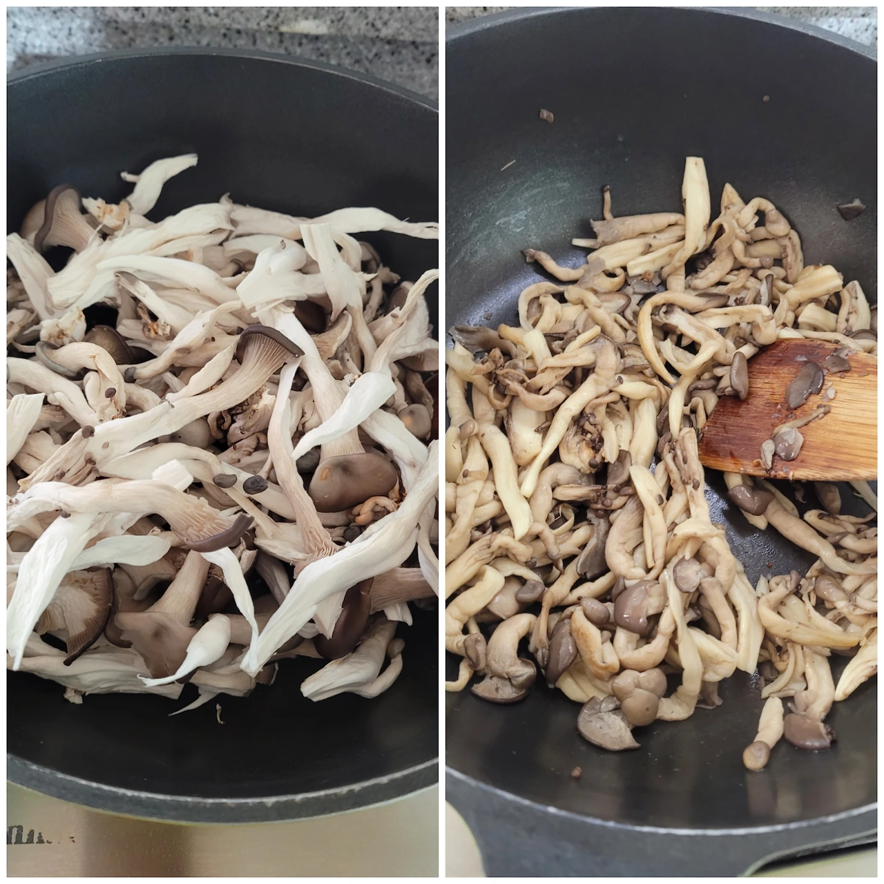 1. 마른 웍에 느타리버섯을 모두 넣고 볶아줍니다.(약불)