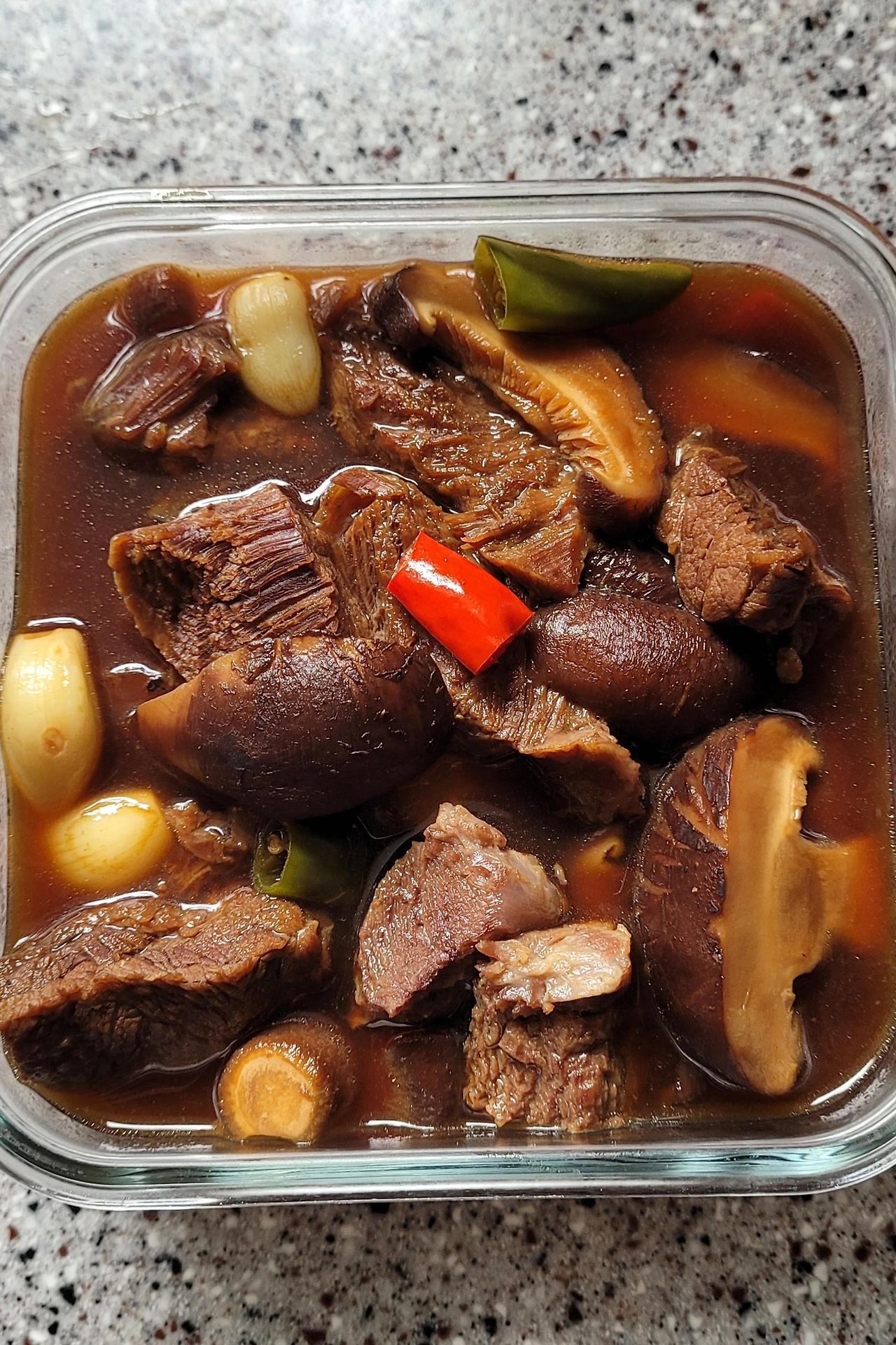 재료: 사태(먹을 만큼), 표고버섯, 청양고추, 양파, 대파, 표고버섯, 통마늘, 월계수잎, 통후추
