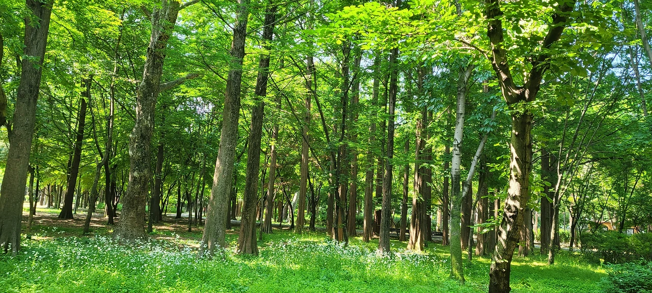 지난 주말엔 아들도 합류해 매헌시민공원과 양재시민공원에 들렀다. 큰 이등변 삼각형의 지형처럼 생긴 자투리 공간을 공원으로 조성한 매헌시민공원은 작은 '서울숲 공원' 같다는 생각이 든다. 우면산 끝자락에 위치하고 있으며 주변에는 양재천이 흐르고 있다. '서울숲 공원'이 광대하다면 이곳은 그곳의 축소판처럼 울창하고 알차게 조성된 단단한 숲 같다는 생각이다.