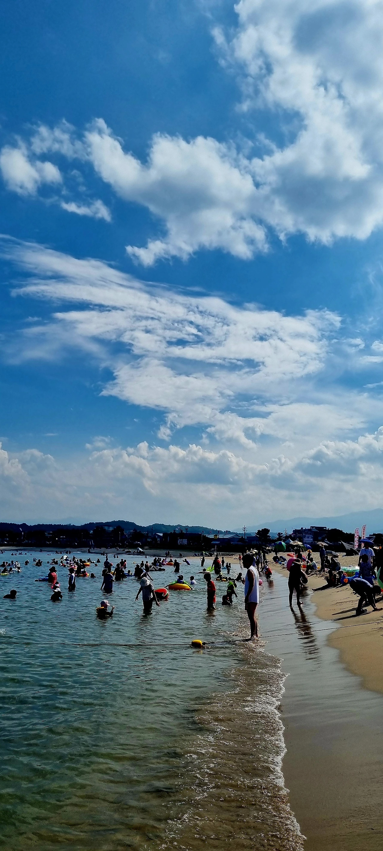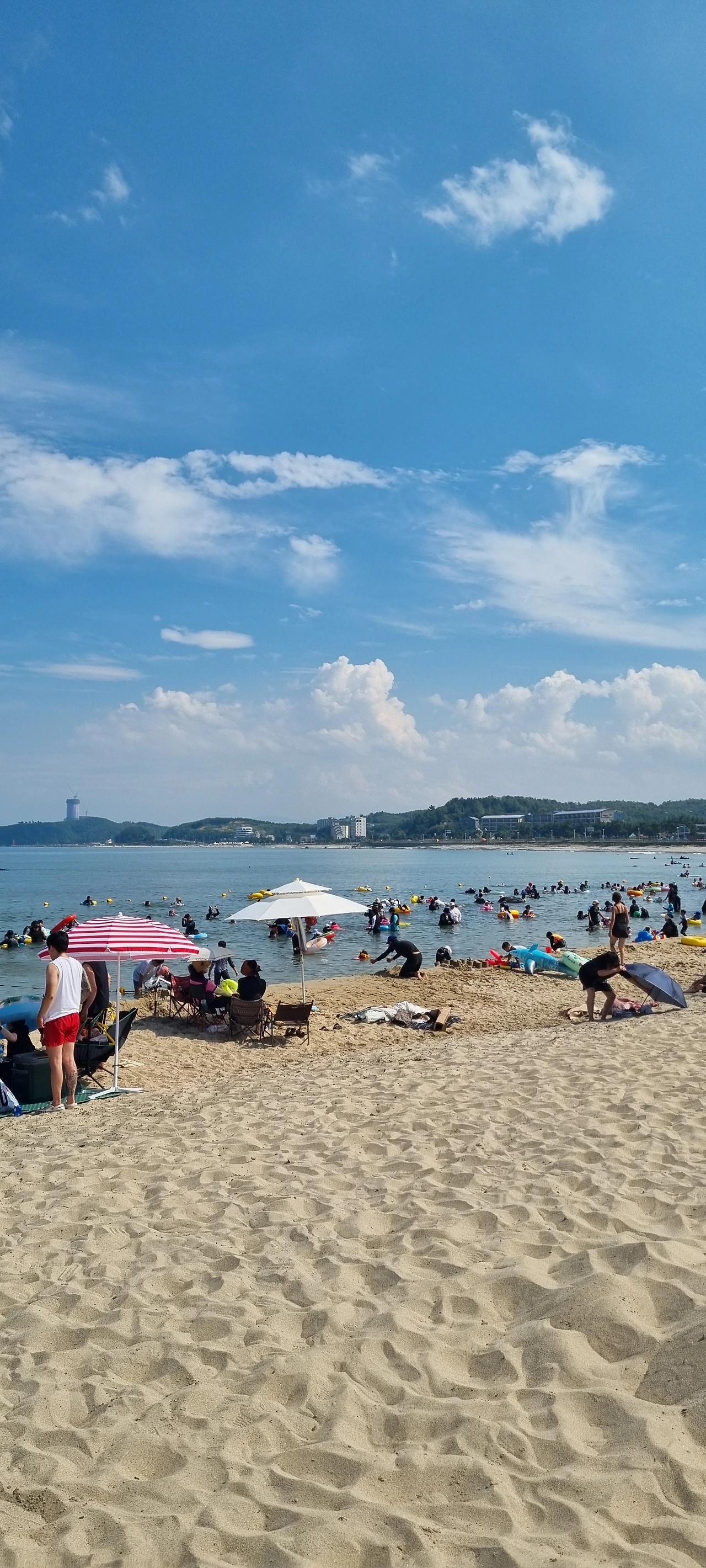 어렵게 '양양 해수욕장'에 도착해 주차를 하고 저 멀리 바다를 향해 걷는데 도착도 하기 전에 우리 모두는 헉헉대고 있었습니다. 이글거리는 태양 아래에 빨갛게 익은 사람들이 바다를 즐기고 있더군요. 이상한 마음에 하늘과 바다, 그리고 해수욕하는 사람들을 카메라에 담아봤습니다. 사진 속 풍경은 너무 아름다운데 이럴 수가!