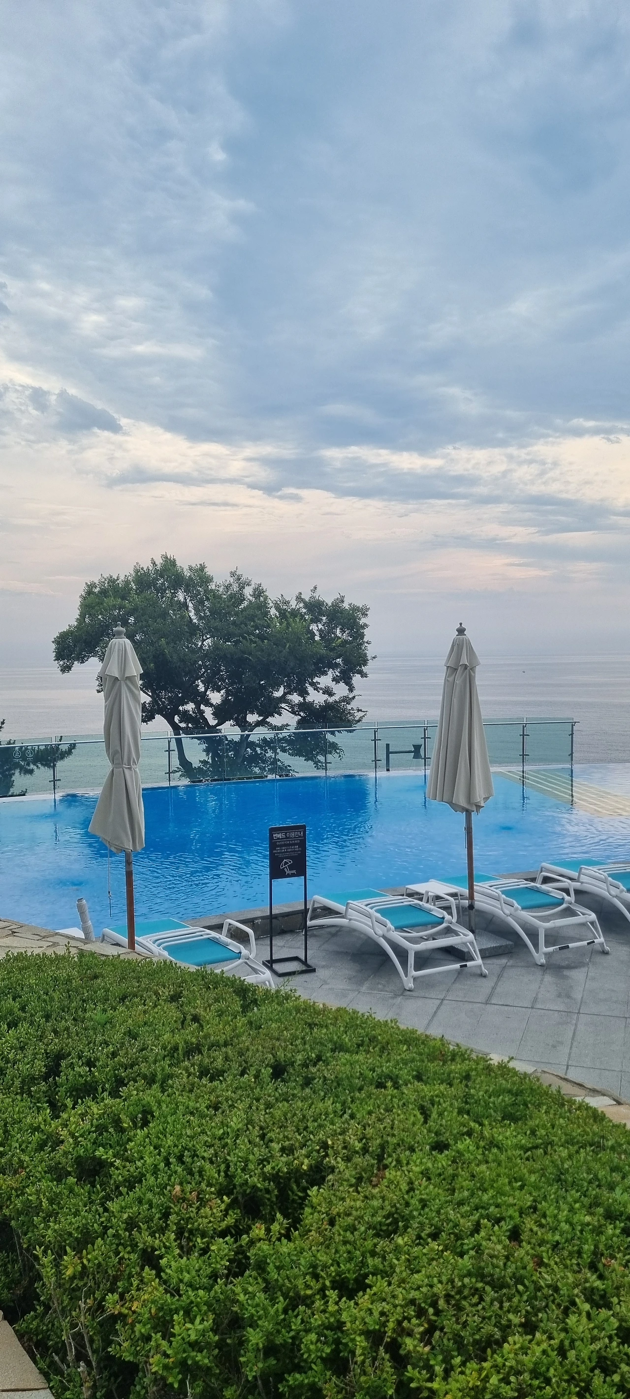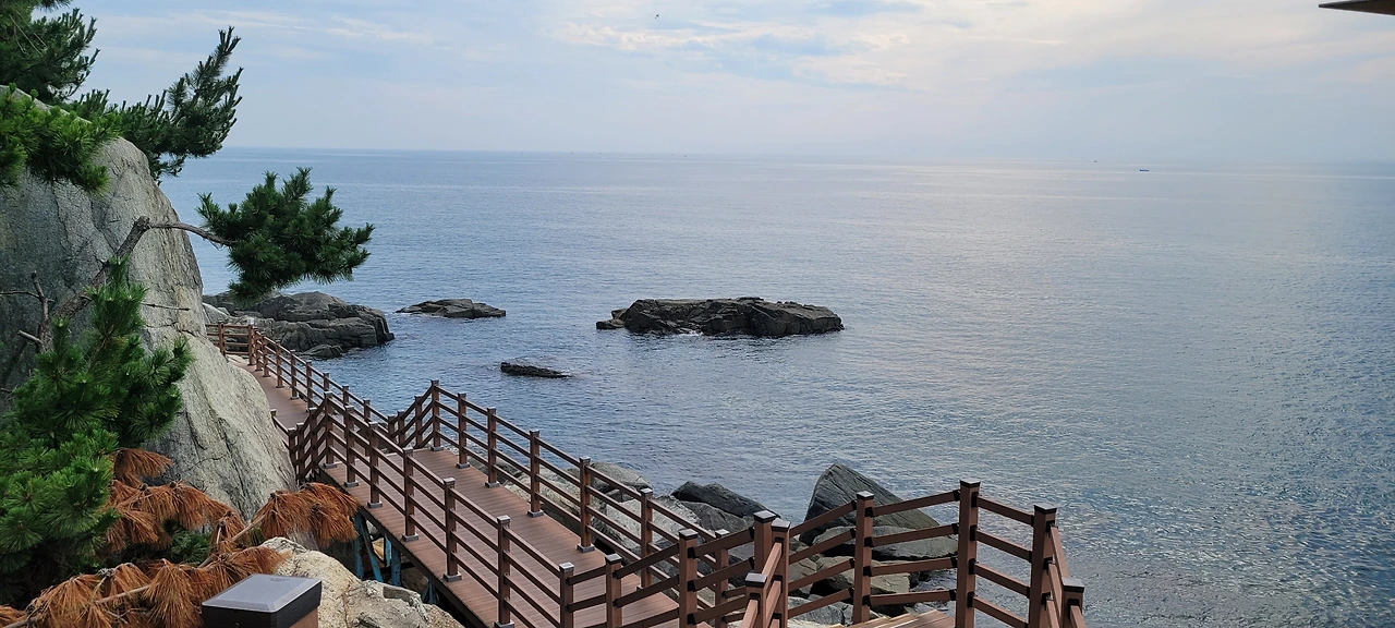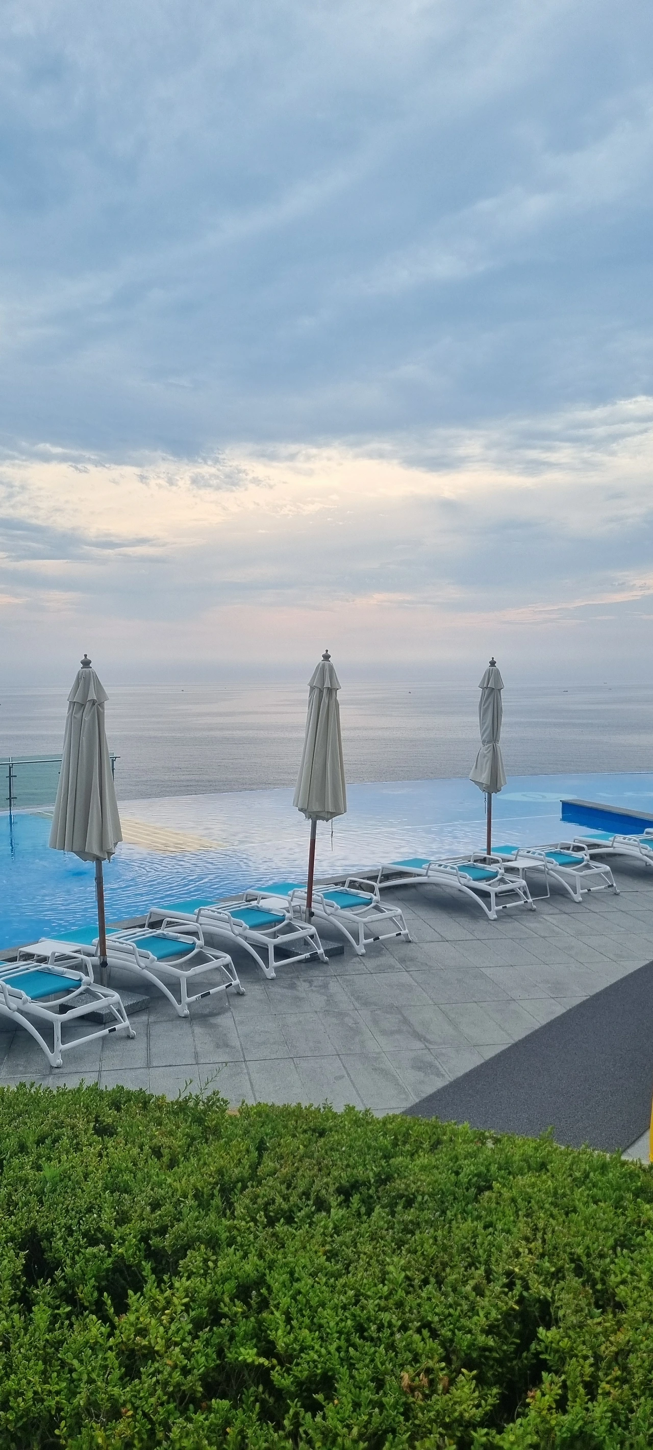 체크아웃하는 아침 산책은 리조트에서 조성한 데코길을 걸으며 눈과 가슴에 동해바다를 가득 담으려고 노력했습니다. 지나고 나면 그리워질 시간들이니까요. 오픈전 인피니트 풀장에 쪽문을 열어놨길래 들어가 이틀간 휴식을 취했던 시간들을 회상했습니다. 하늘과 바다를 동시에 즐기면서 짠물에 몸을 담그지 않고 편안하게 보냈던 여름휴가라고 기억되겠지요. 아무튼 더위 많이 타는 나 같은 사람은 갈수록 여름 나기가 보통 힘든 게 아니겠구나 싶기도 합니다.